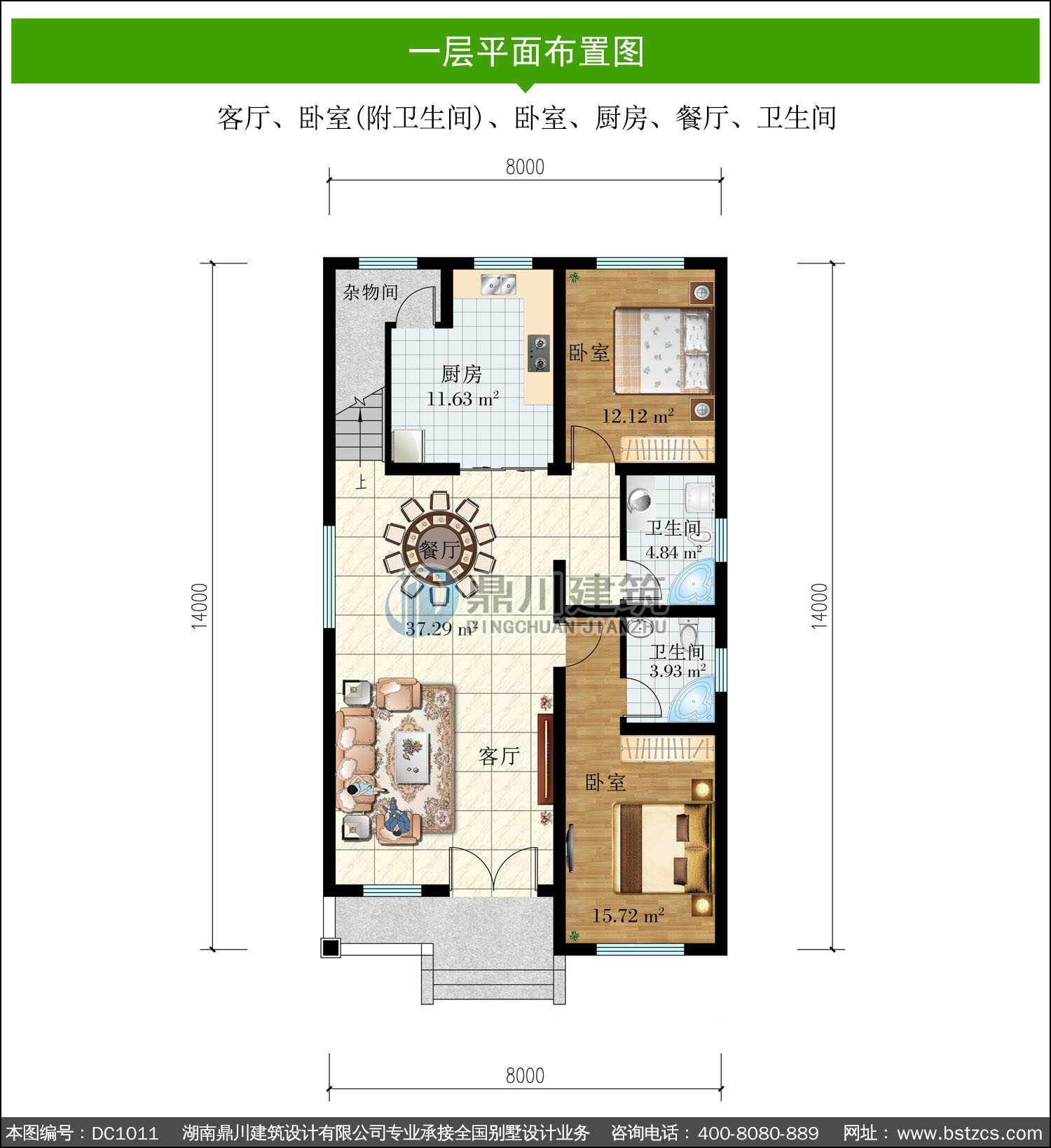 | 編號: DC1011 | 層數: 二層 | 結構形式: 磚混結構 | 主體造價: 29-33萬 |