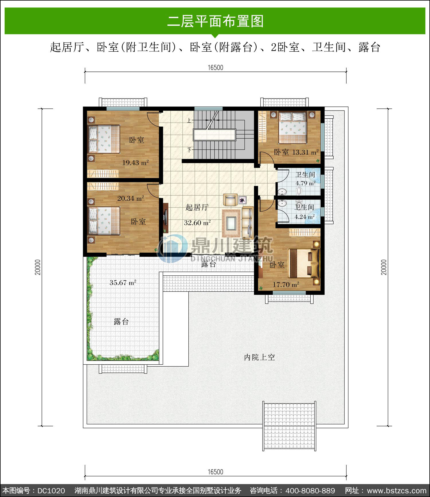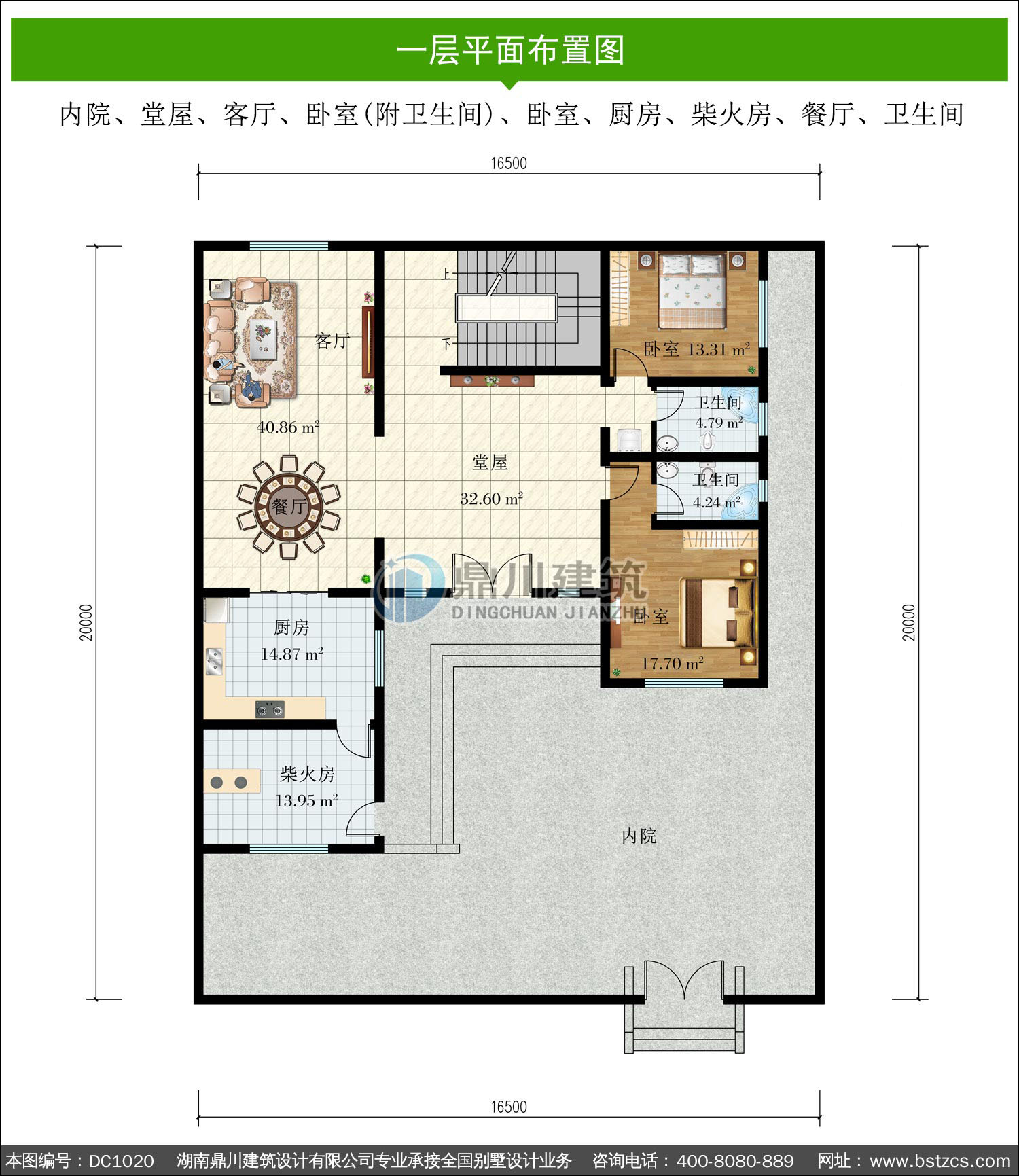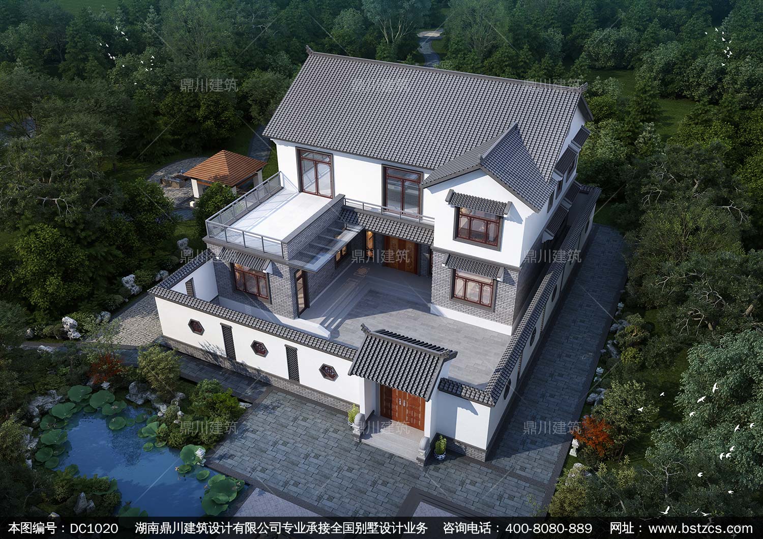 中式二層帶內(nèi)院別墅施工圖紙及效果圖_農(nóng)村自建別墅設(shè)計(jì),鼎川建筑