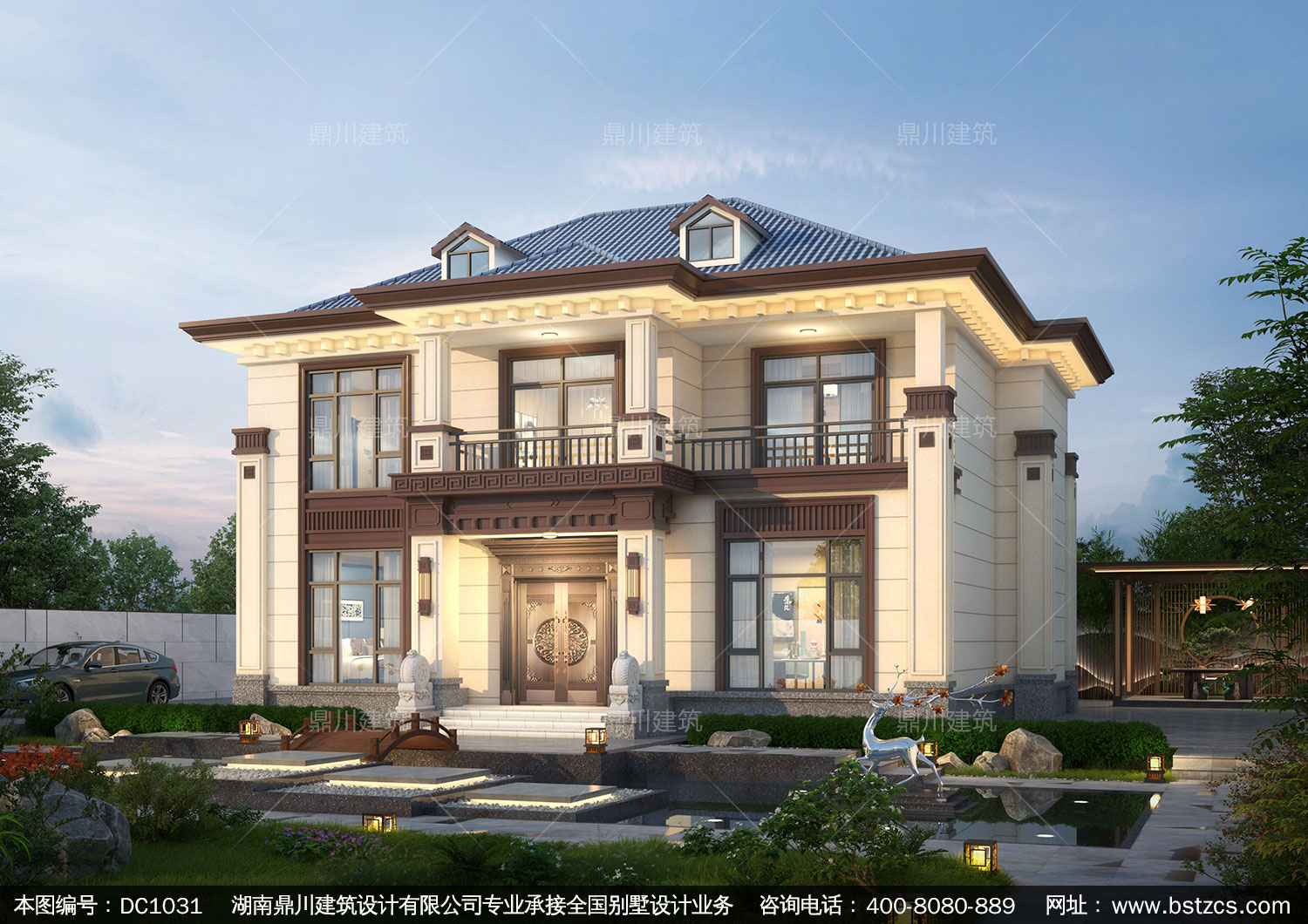 新中式二層帶陽臺別墅施工圖紙及效果圖_農村自建別墅設計,鼎川建筑