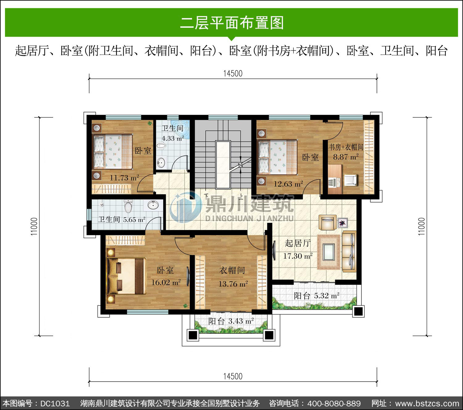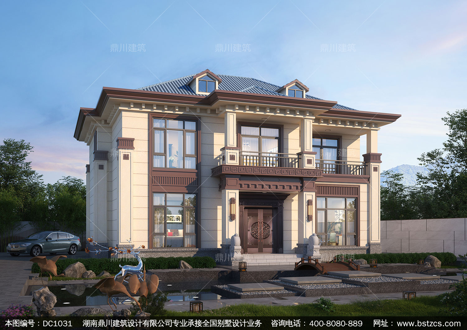 二層帶陽臺新中式別墅施工圖紙及效果圖_新農村自建房設計,鼎川