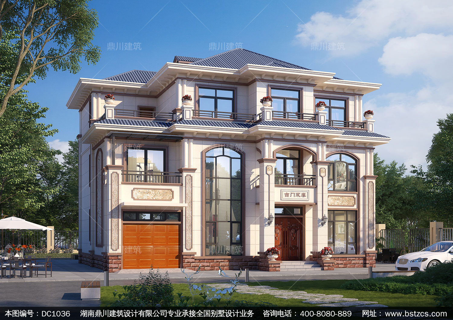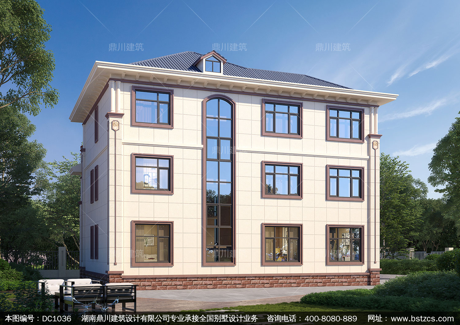 歐式三層帶車庫復式別墅施工圖紙及效果圖_農村別墅設計,鼎川建