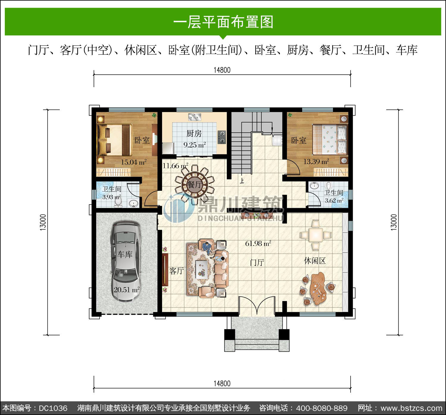 | 一 層: | 門廳、客廳(中空)、休閑區、臥室(附衛生間)、臥室、廚房、餐廳、衛生間、車庫 | |||