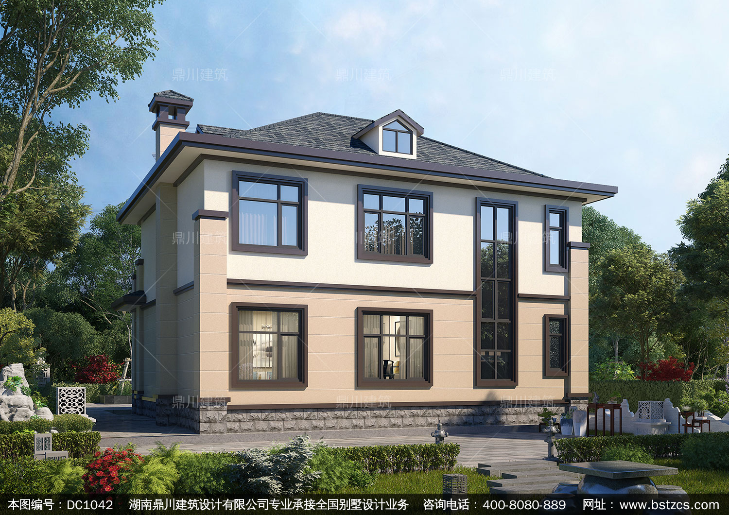 新中式二層小別墅圖紙及外觀效果圖_農村自建別墅設計,鼎川建筑