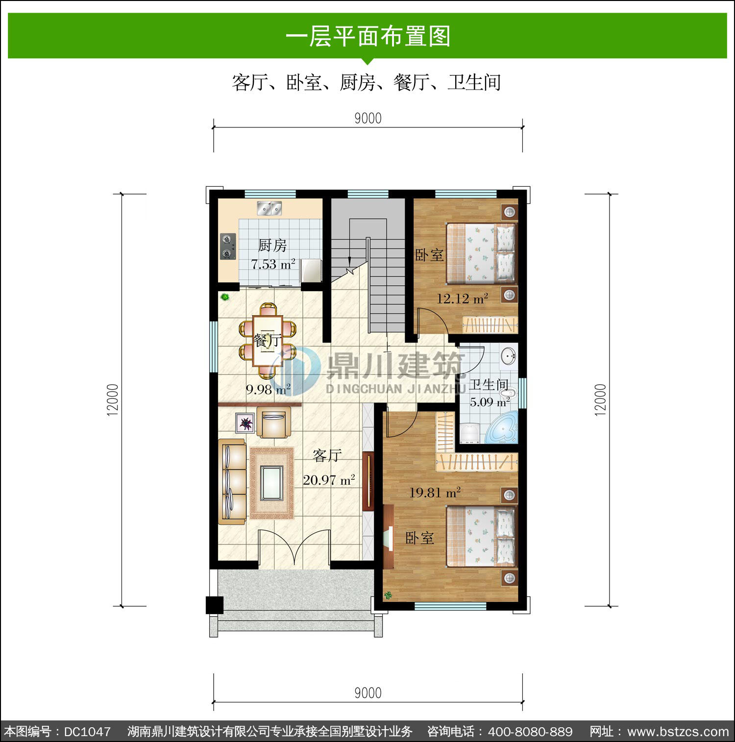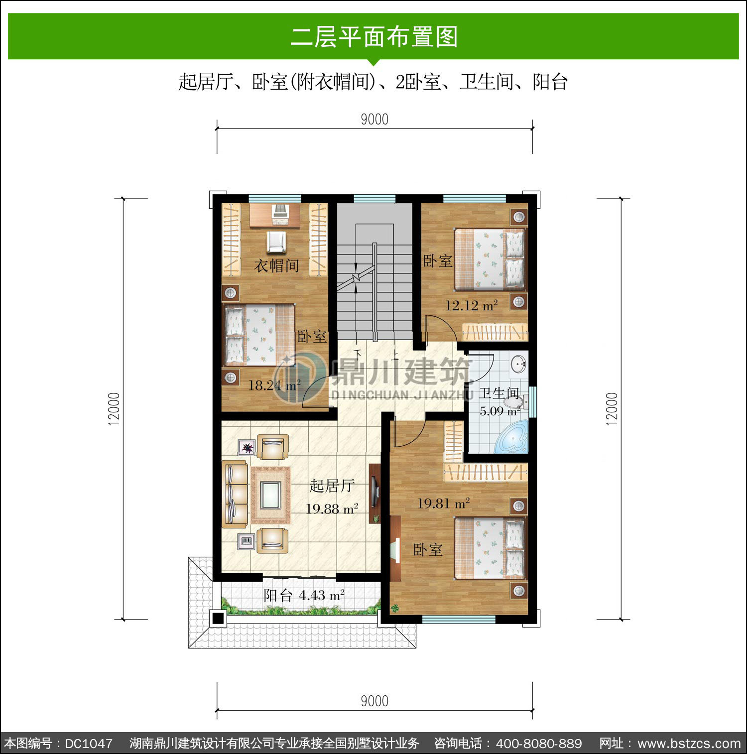 | 開間: 9米 | 進深: 12米 | 占地面積: 113.10平方米 | 建筑面積: 268.84平方米 |