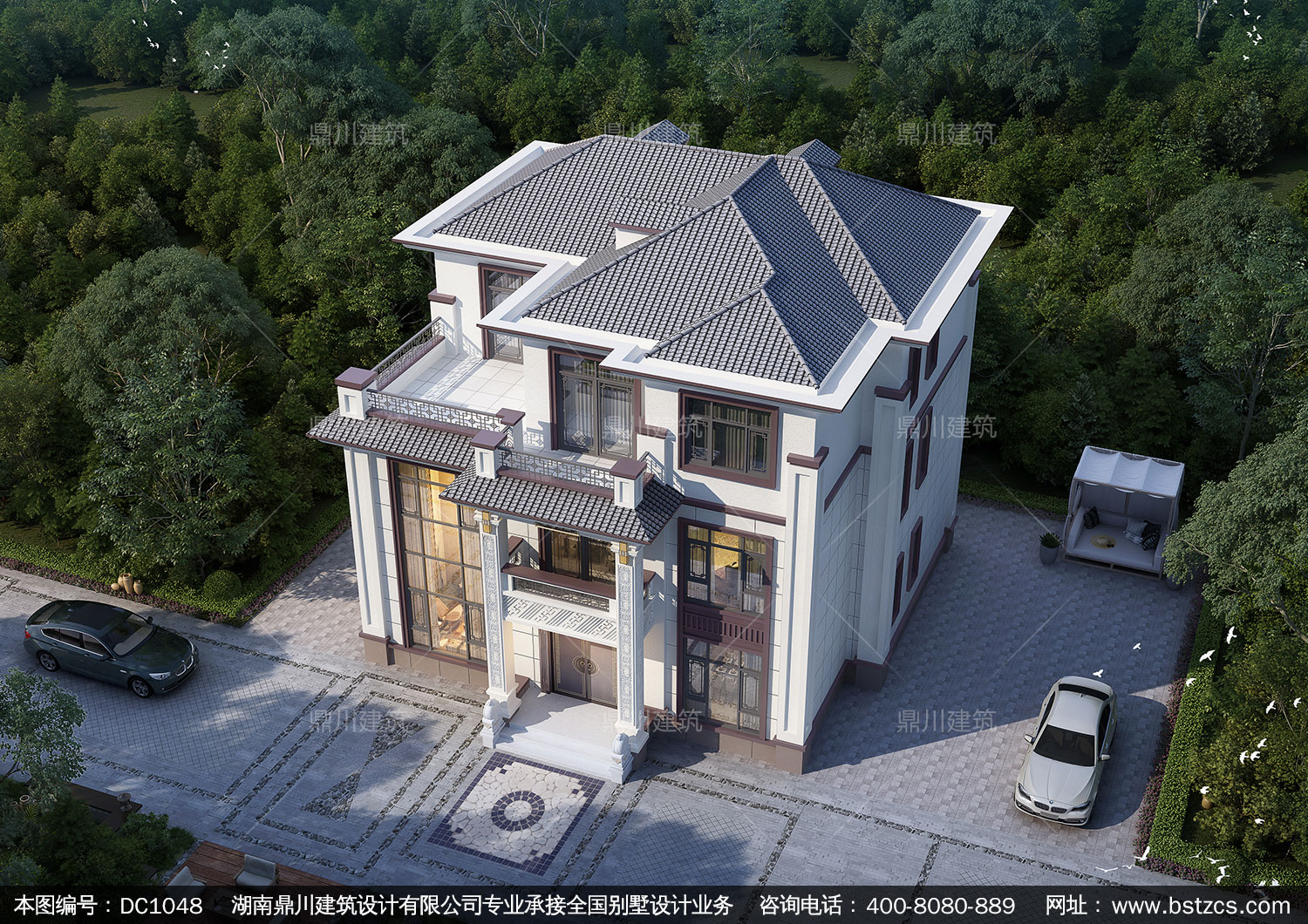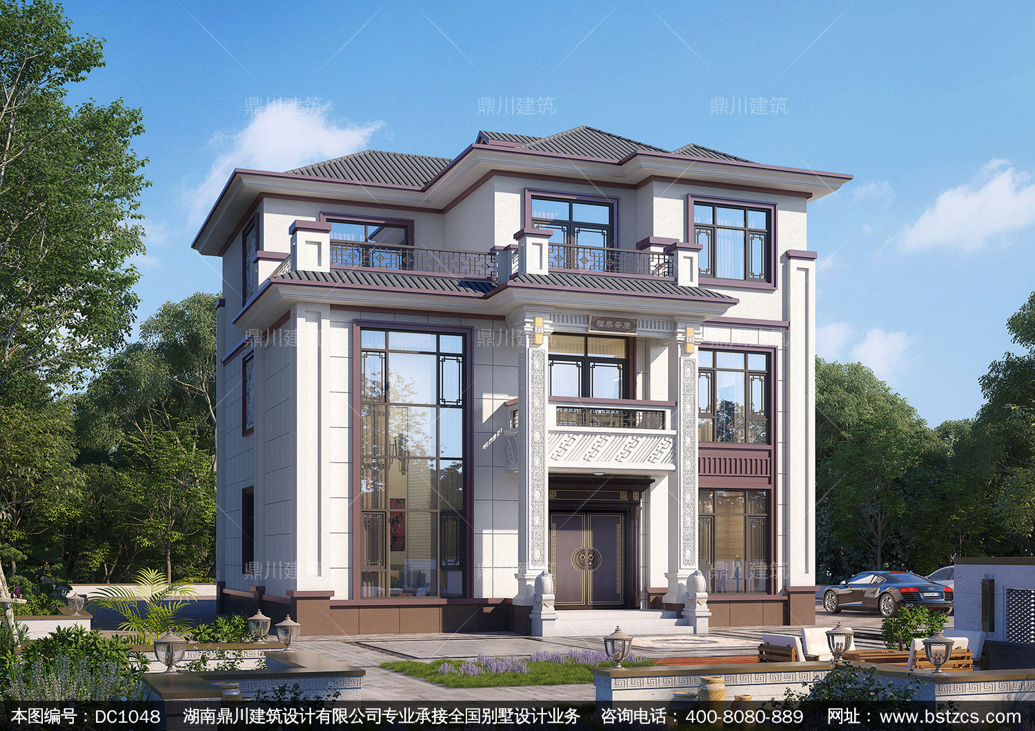 大氣三層新中式別墅設計圖紙及效果圖_農村自建別墅設計,鼎川建