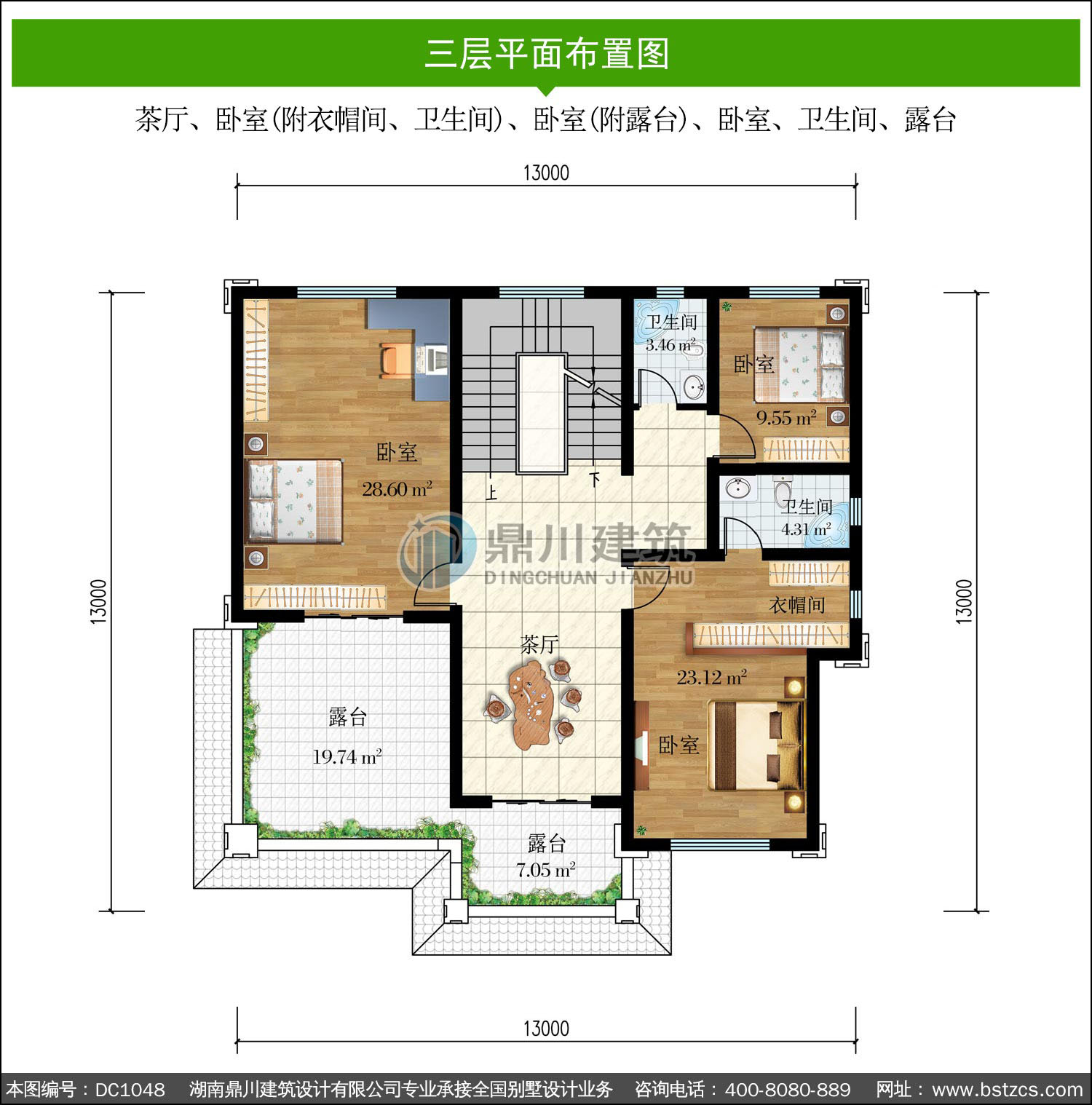 新中式三層復式別墅施工圖紙及效果圖_農村自建別墅設計,鼎川建筑