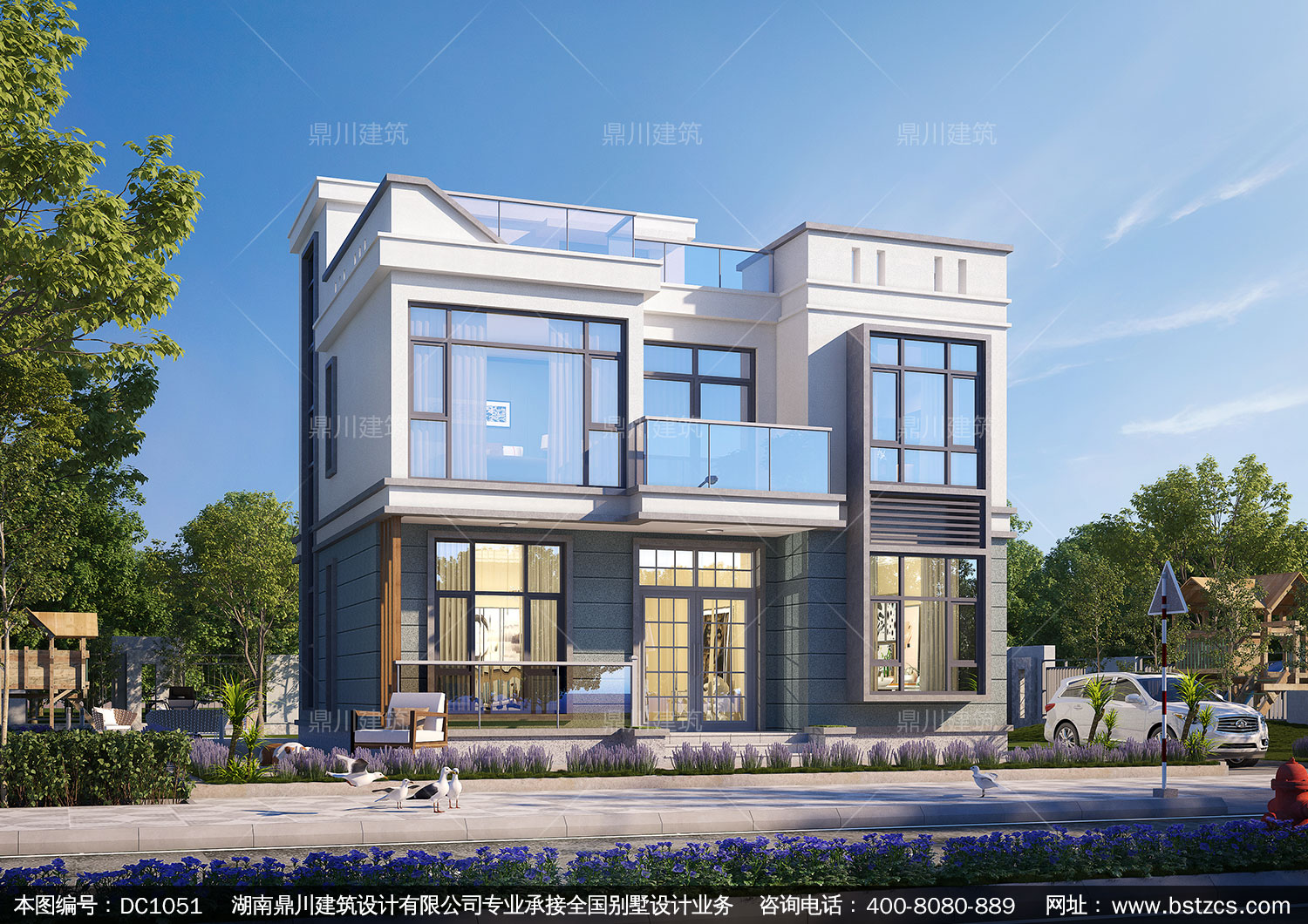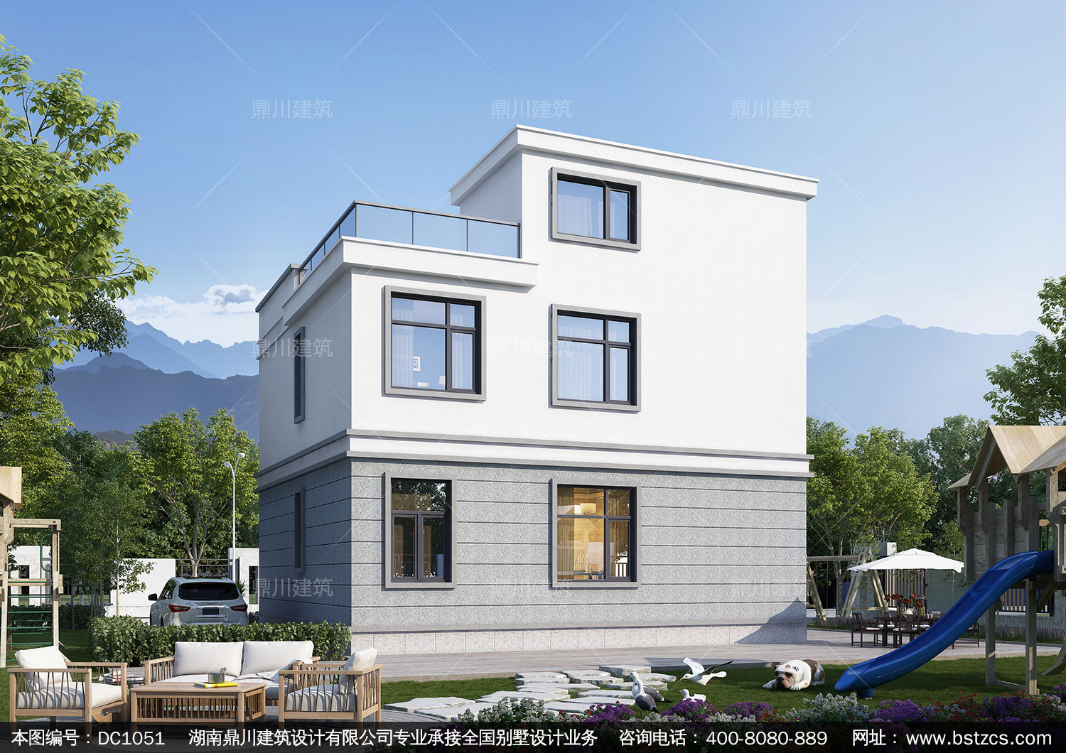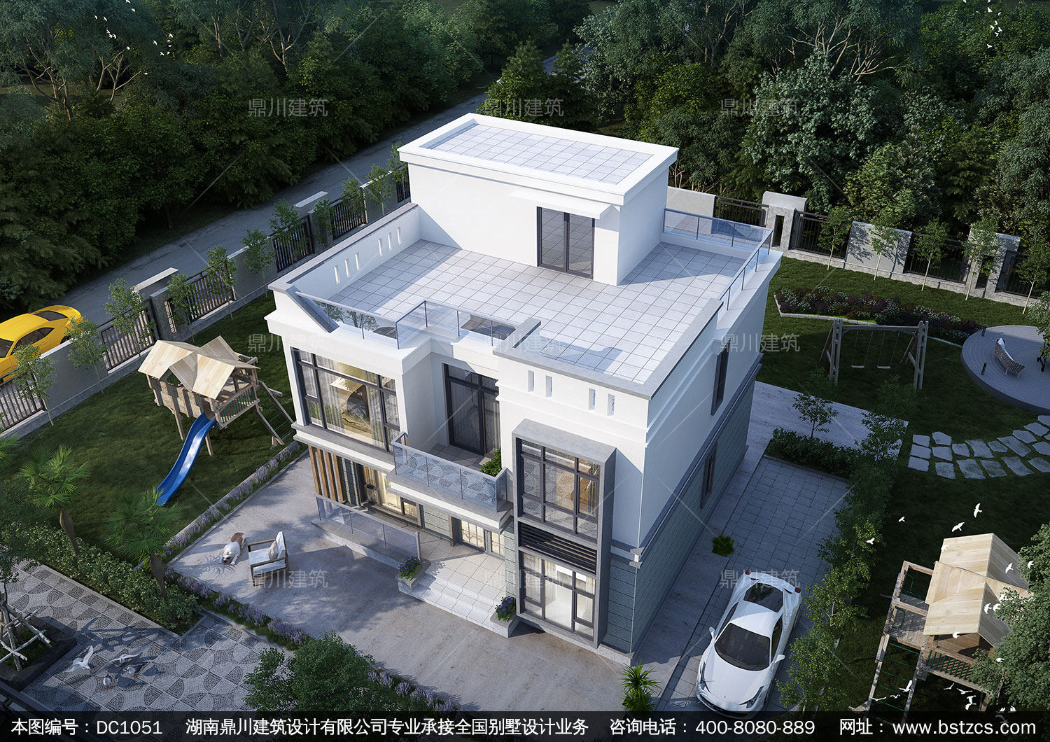 二層現(xiàn)代平屋頂別墅施工圖紙及效果圖_農(nóng)村自建別墅設(shè)計(jì),鼎川建筑