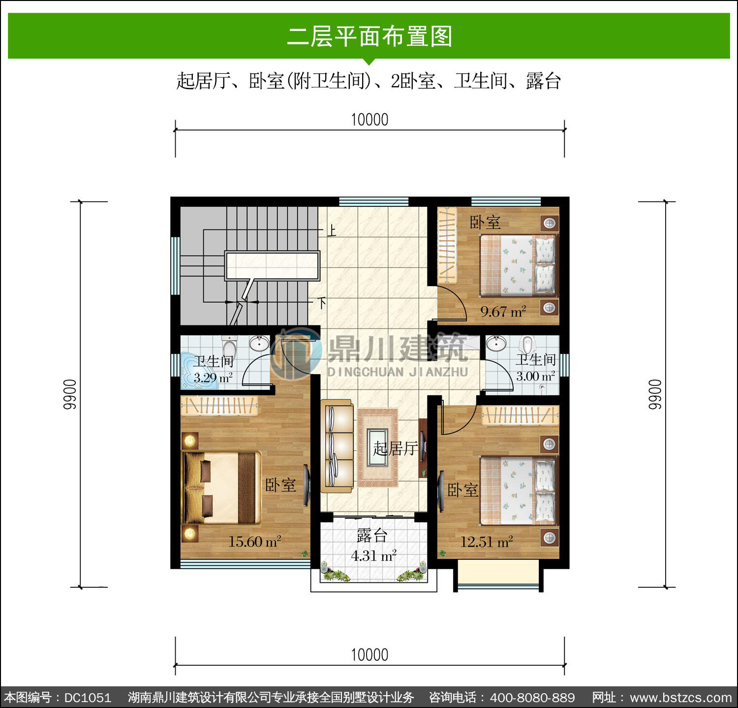 | 二 層: | 起居廳、臥室(附衛(wèi)生間)、2臥室、衛(wèi)生間、露臺 | |||