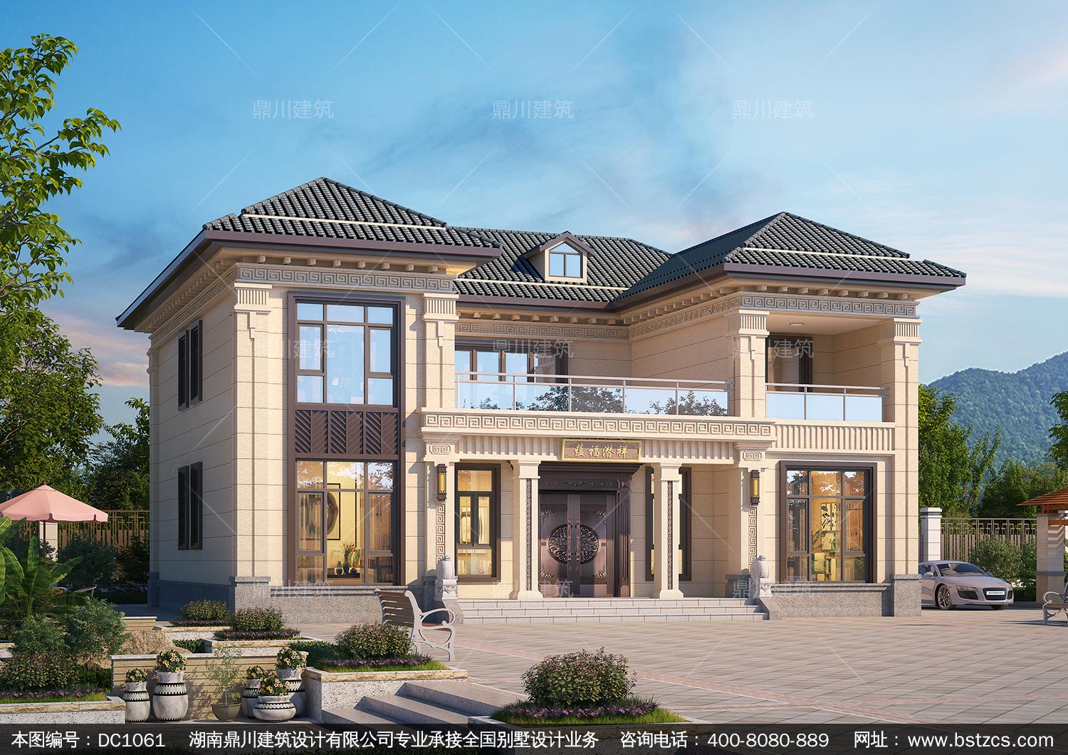 大氣新中式帶露臺別墅設計圖紙及效果圖_農村自建別墅設計,鼎川建筑