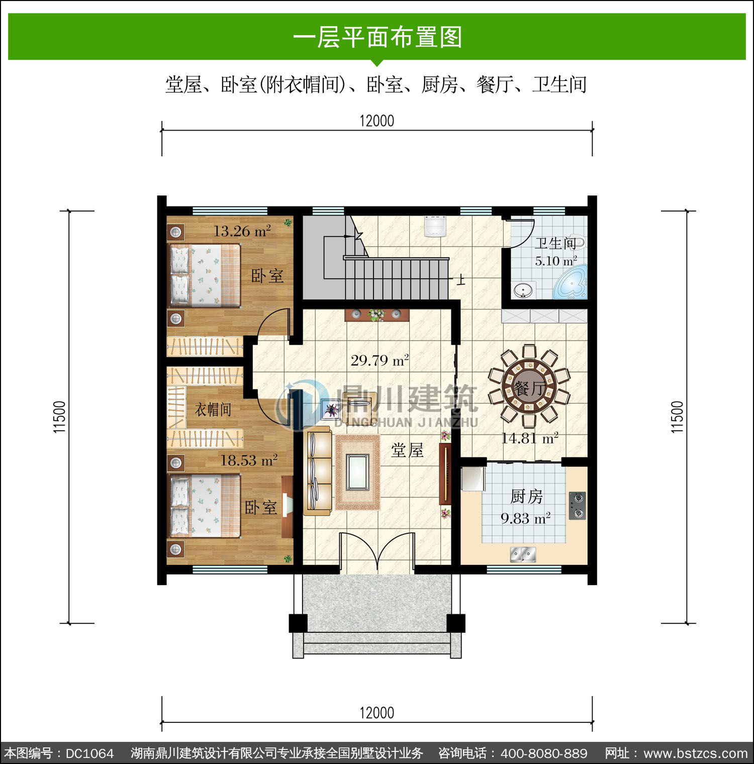 | 一 層: | 堂屋、臥室(附衣帽間)、臥室、廚房、餐廳、衛(wèi)生間 | |||