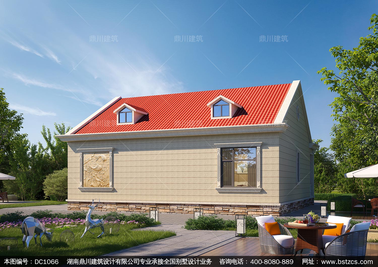 歐式一層別墅施工圖紙及外觀效果圖_新農村自建房設計,鼎川建筑