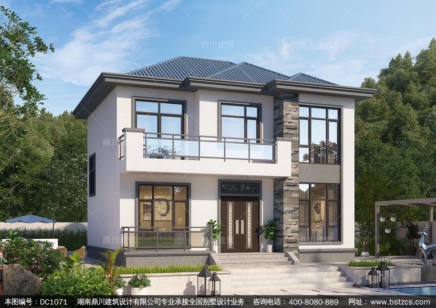 二層簡歐帶陽臺小別墅圖紙及效果圖_農村兩層自建房設計,鼎川建