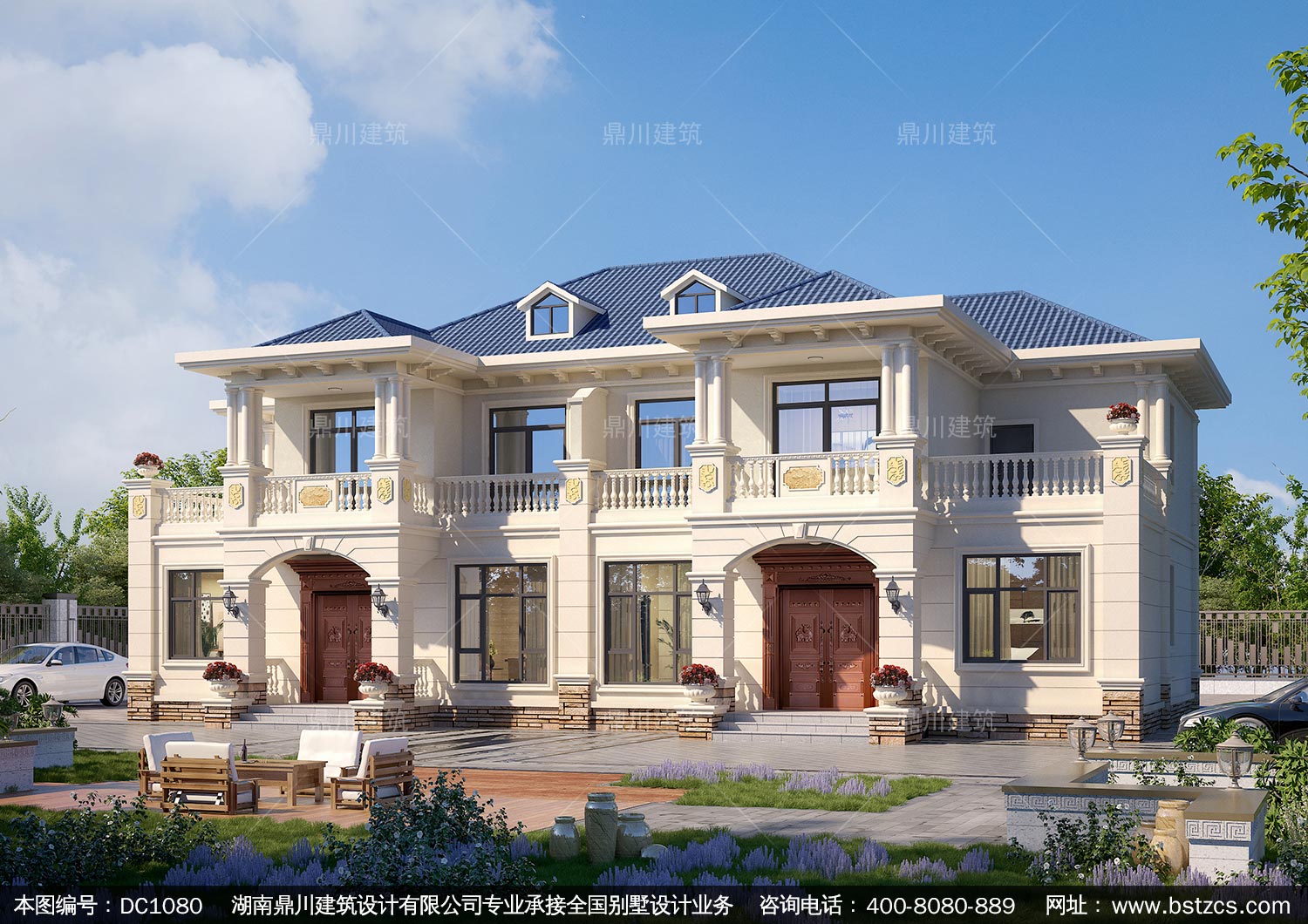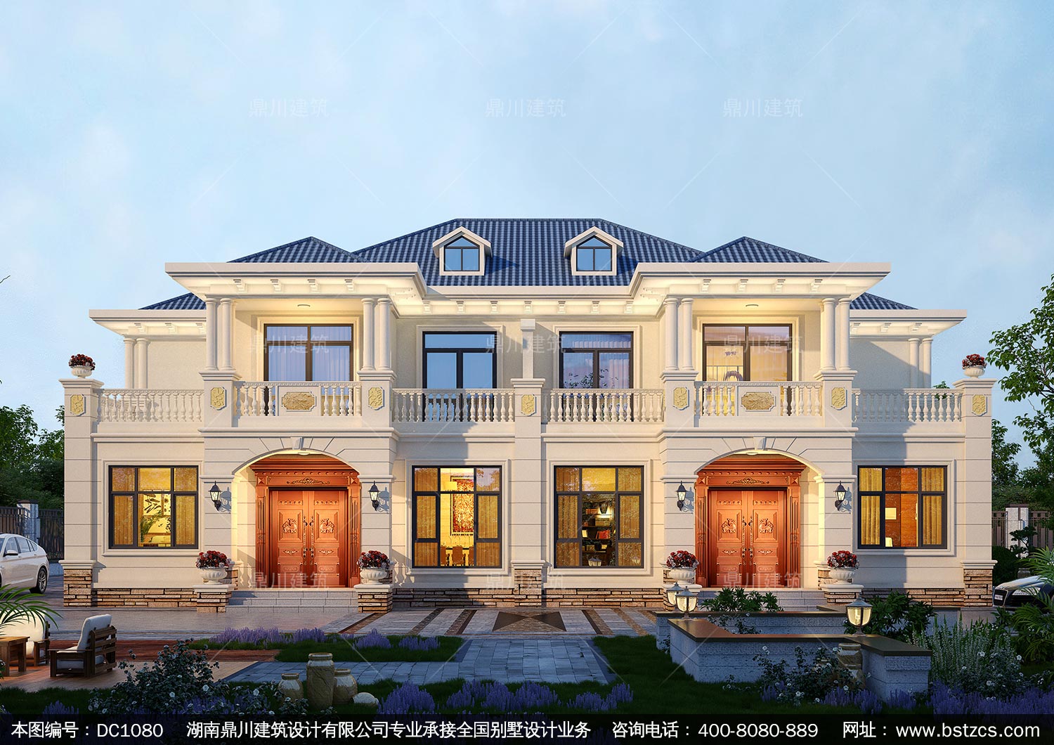 歐式二層雙拼別墅圖紙及效果圖_農(nóng)村兄弟自建雙拼別墅設(shè)計(jì),鼎川建筑