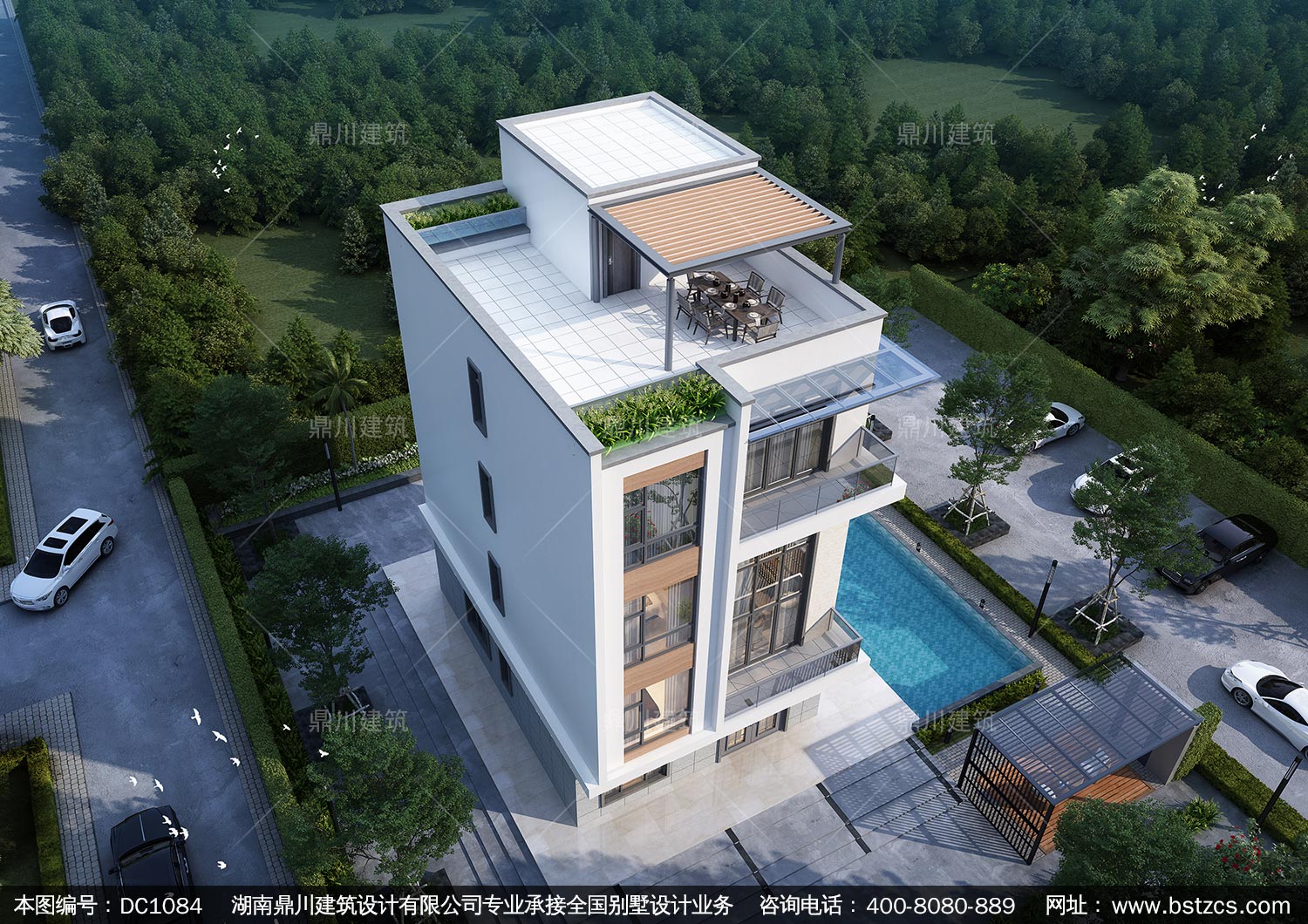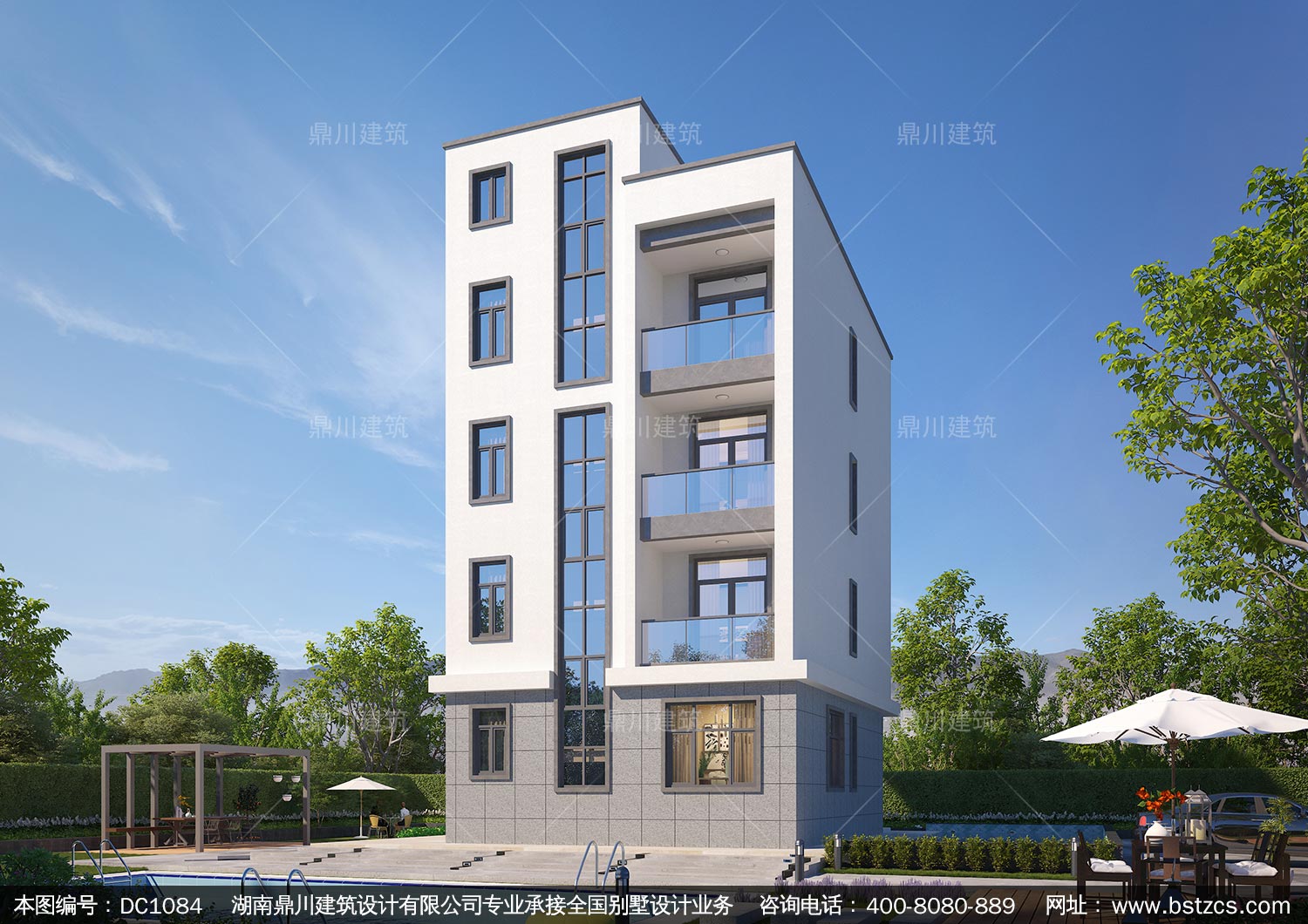現代四層帶商鋪別墅圖紙及效果圖_新農村自建別墅設計,鼎川建筑