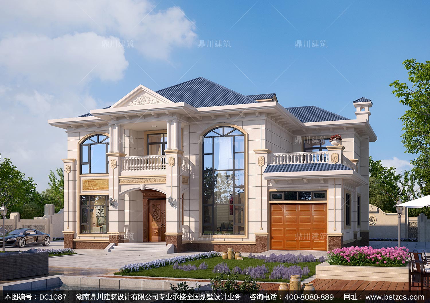 歐式二層帶車庫小別墅效果圖及施工圖紙_農村兩層自建房設計,鼎