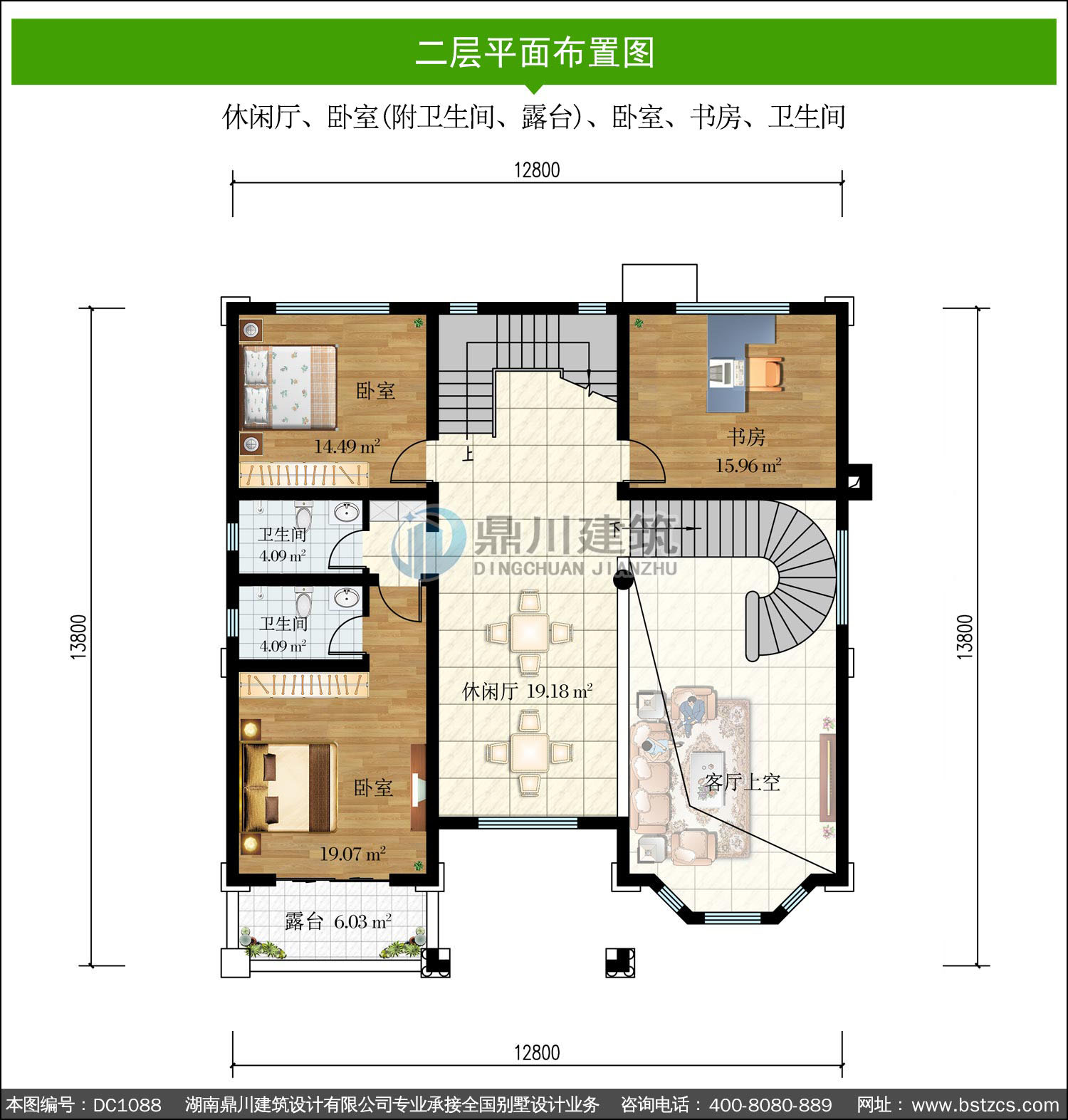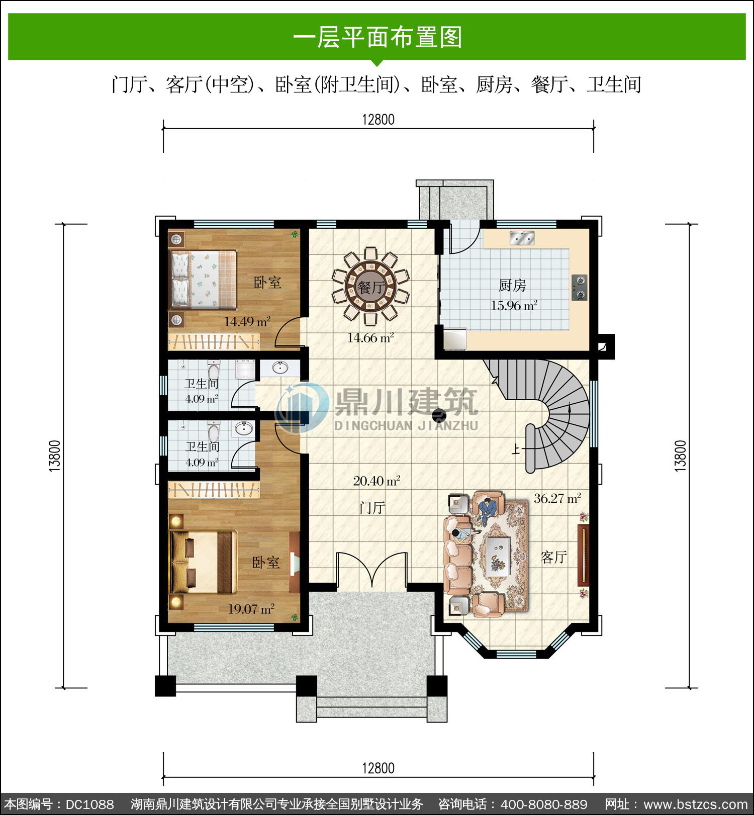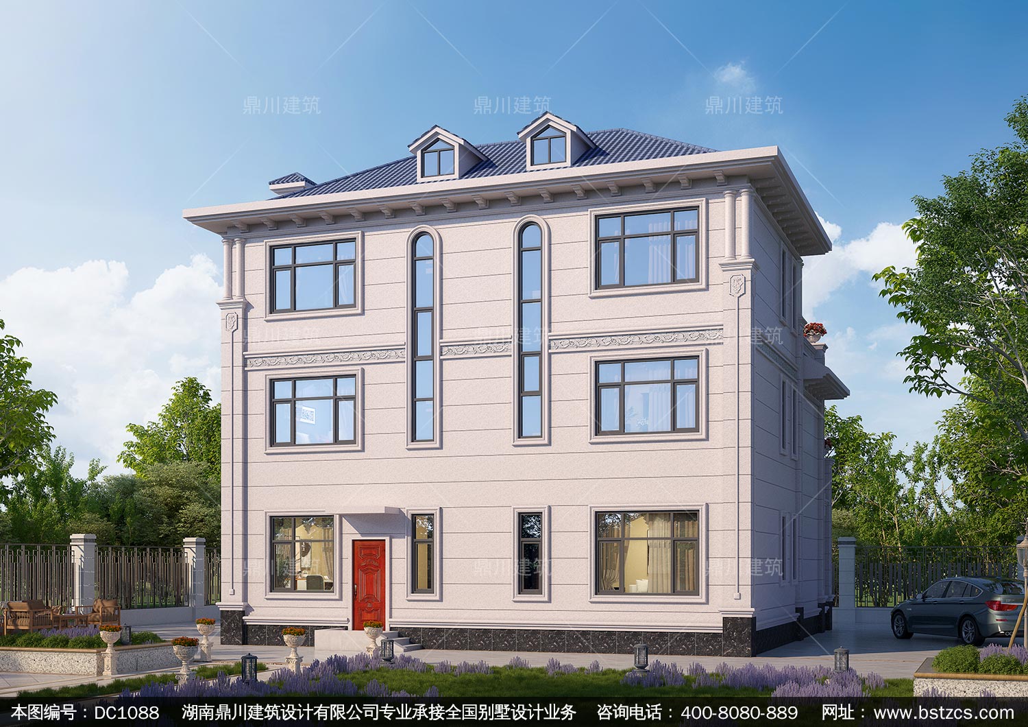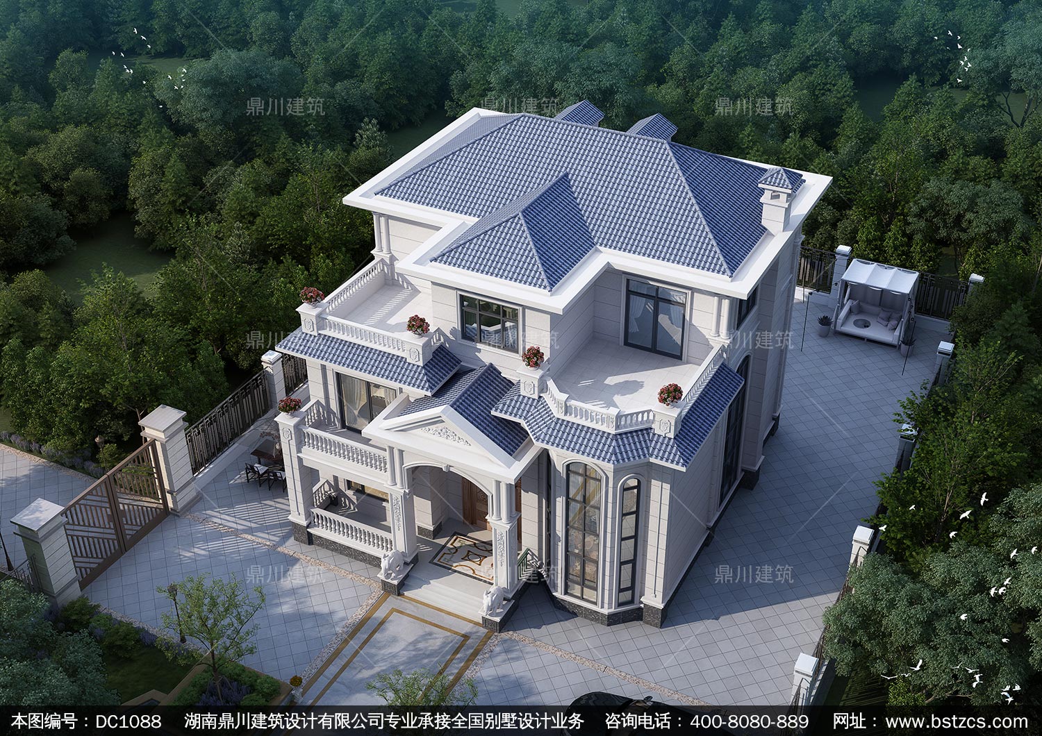 三層復(fù)式帶旋轉(zhuǎn)樓梯別墅圖紙及外觀效果圖_農(nóng)村自建別墅設(shè)計(jì),鼎川建筑
