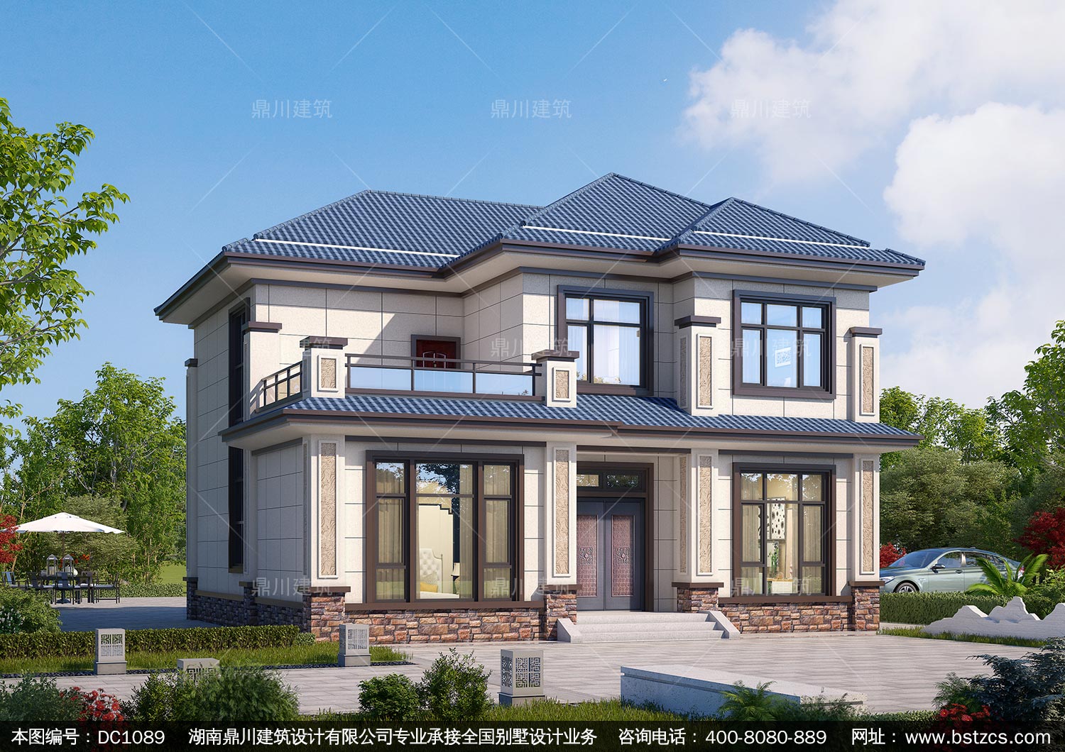 新中式二層帶露臺別墅圖紙及效果圖_農(nóng)村自建別墅設(shè)計,鼎川建筑