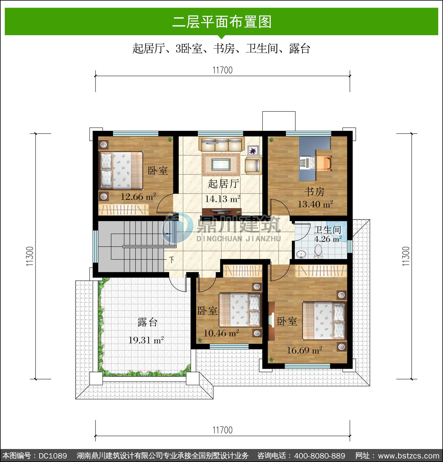 | 二 層: | 起居廳、3臥室、書房、衛(wèi)生間、露臺 | |||