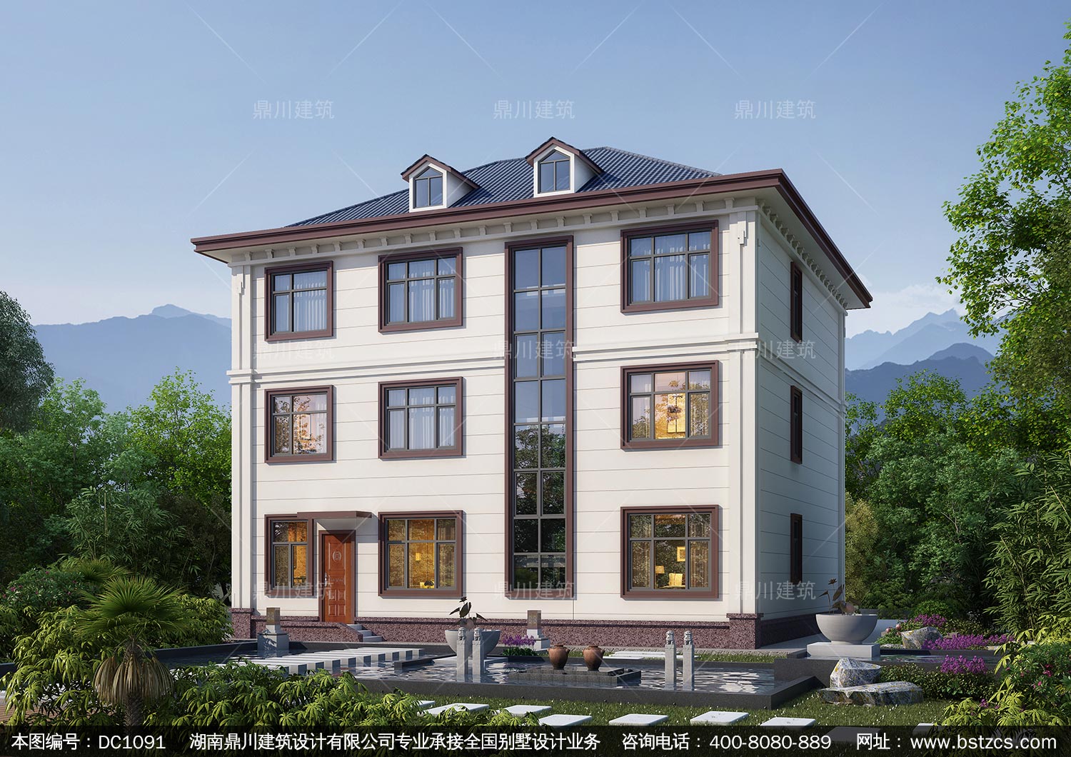 新中式三層復(fù)式別墅圖紙及外觀效果圖_農(nóng)村自建別墅設(shè)計,鼎川建筑