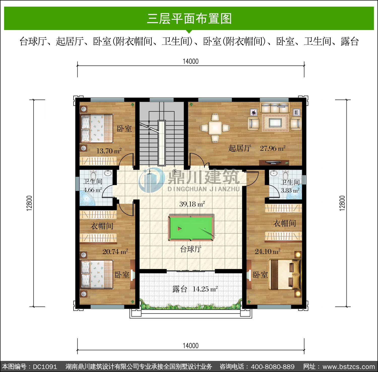 | 三 層: | 臺球廳、起居廳、臥室(附衣帽間、衛(wèi)生間)、臥室(附衣帽間)、臥室、衛(wèi)生間、露臺 | |||
