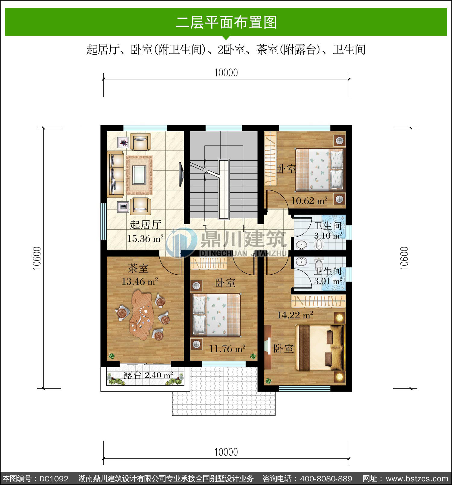 歐式二層帶露臺別墅施工圖紙及效果圖_農村自建房屋設計,鼎川建