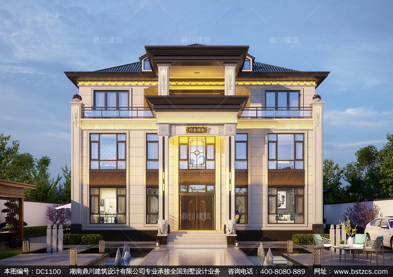 大氣新中式三層復(fù)式別墅圖紙及效果圖_農(nóng)村自建別墅設(shè)計,鼎川建筑
