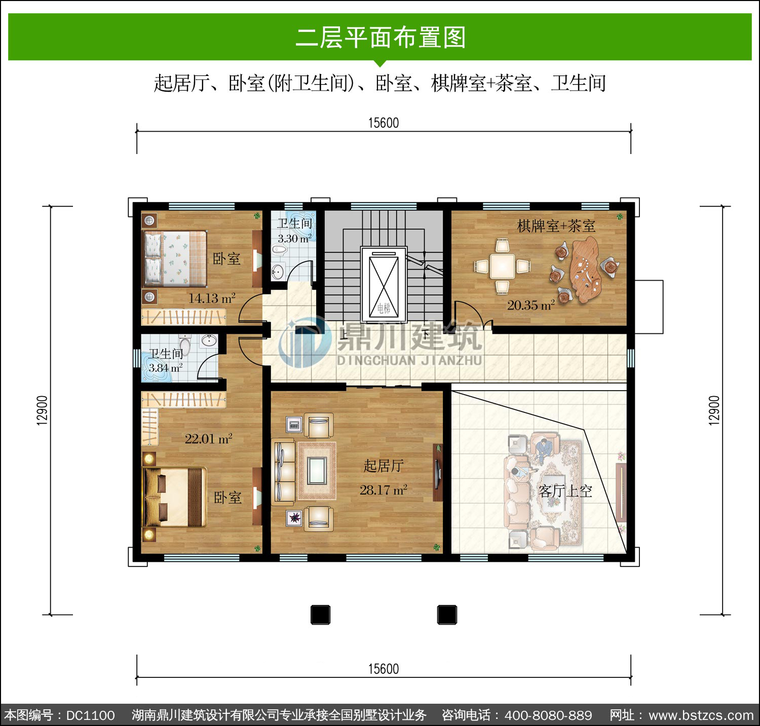 | 二 層: | 起居廳、臥室(附衛(wèi)生間)、臥室、棋牌室+茶室、衛(wèi)生間 | |||