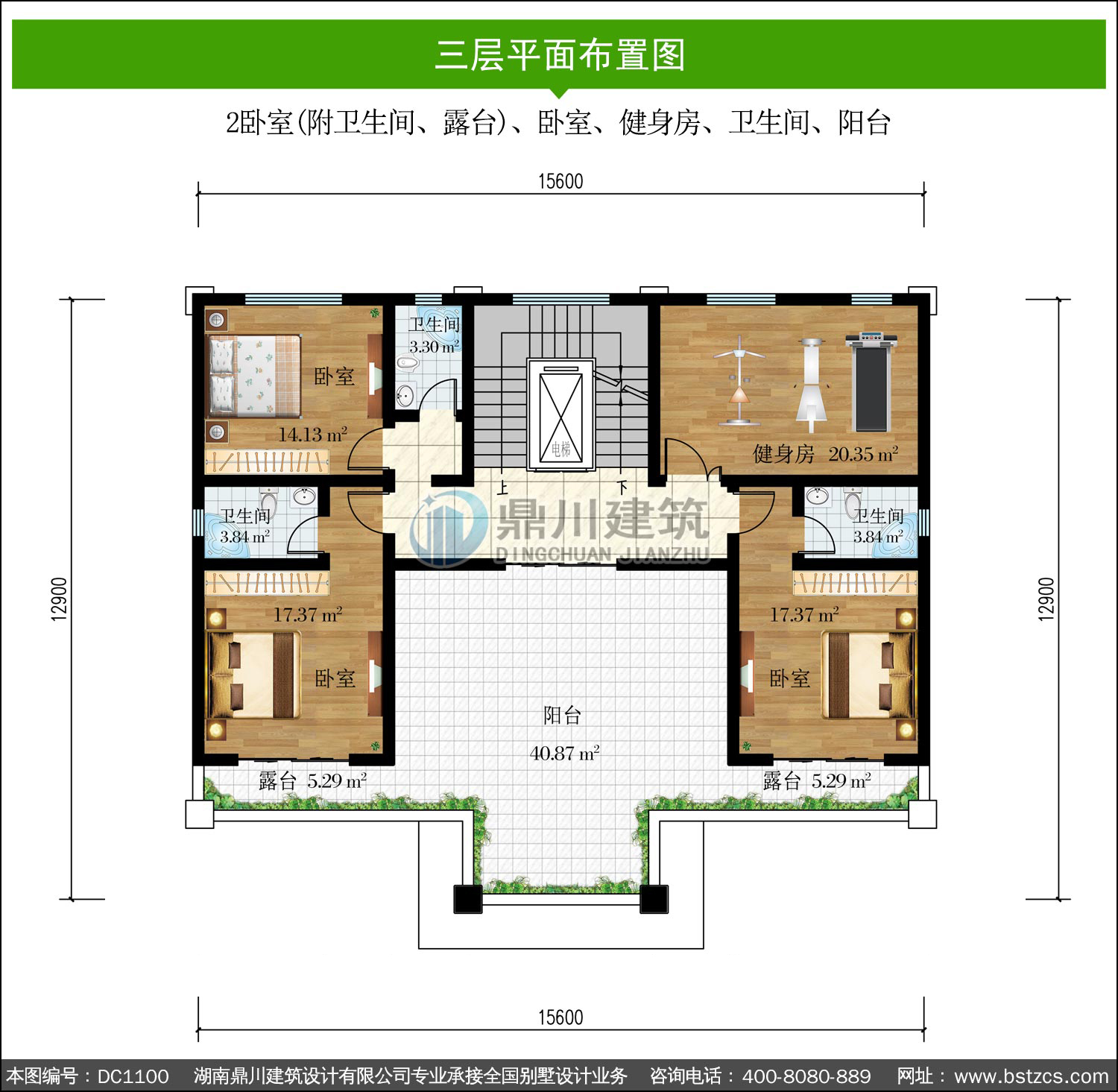 | 三 層: | 2臥室(附衛(wèi)生間、露臺)、臥室、健身房、衛(wèi)生間、陽臺 | |||