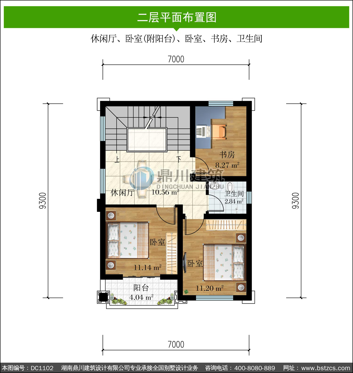 | 二 層: | 休閑廳、臥室(附陽臺)、臥室、書房、衛生間 | |||