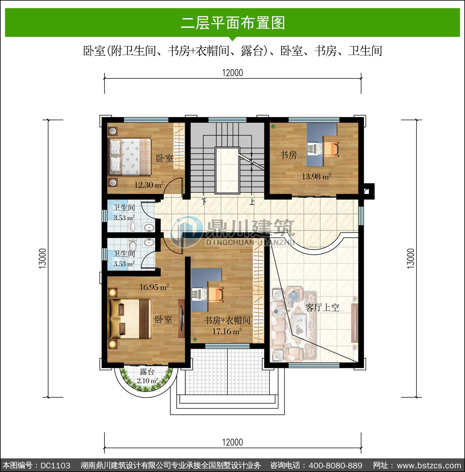 | 二 層: | 臥室(附衛(wèi)生間、書房+衣帽間、露臺)、臥室、書房、衛(wèi)生間 | |||