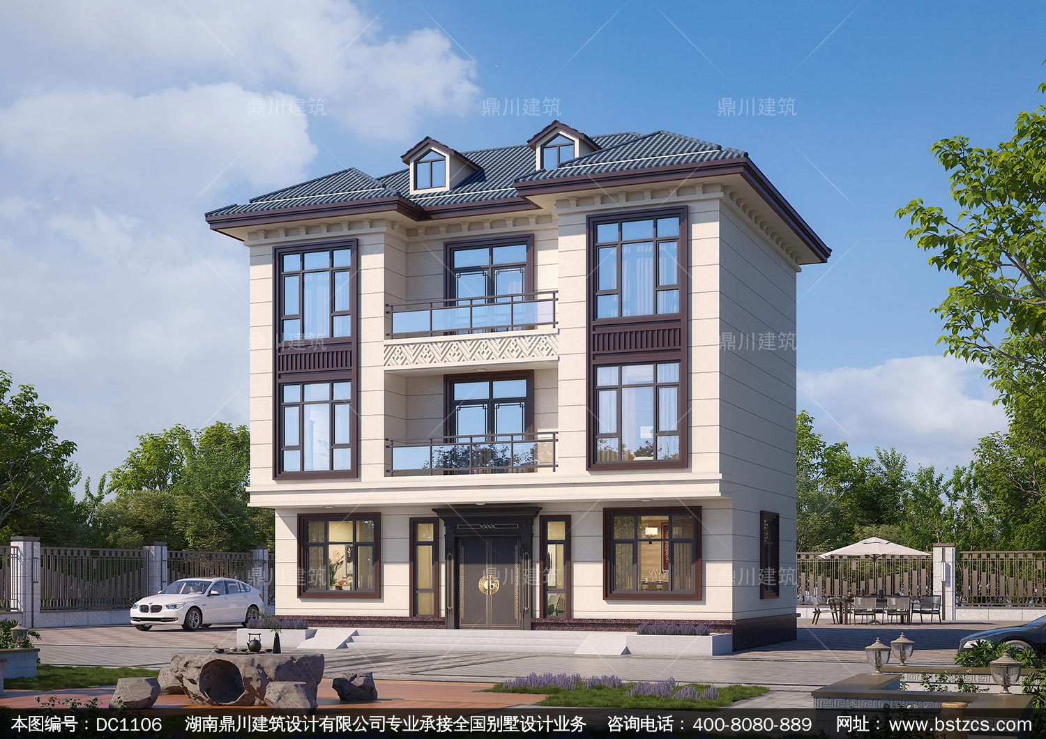 新中式三層帶陽臺別墅施工圖紙及效果圖_農村自建別墅設計,鼎川