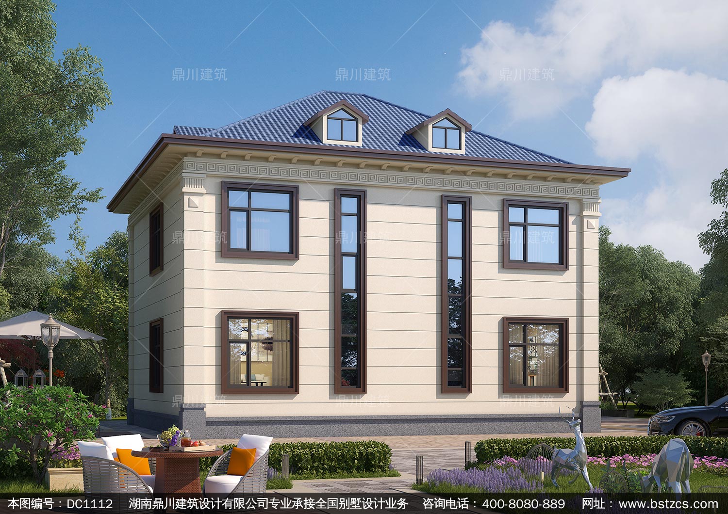 新中式二層別墅施工圖紙及外觀效果圖_農(nóng)村自建別墅設(shè)計(jì),鼎川建筑
