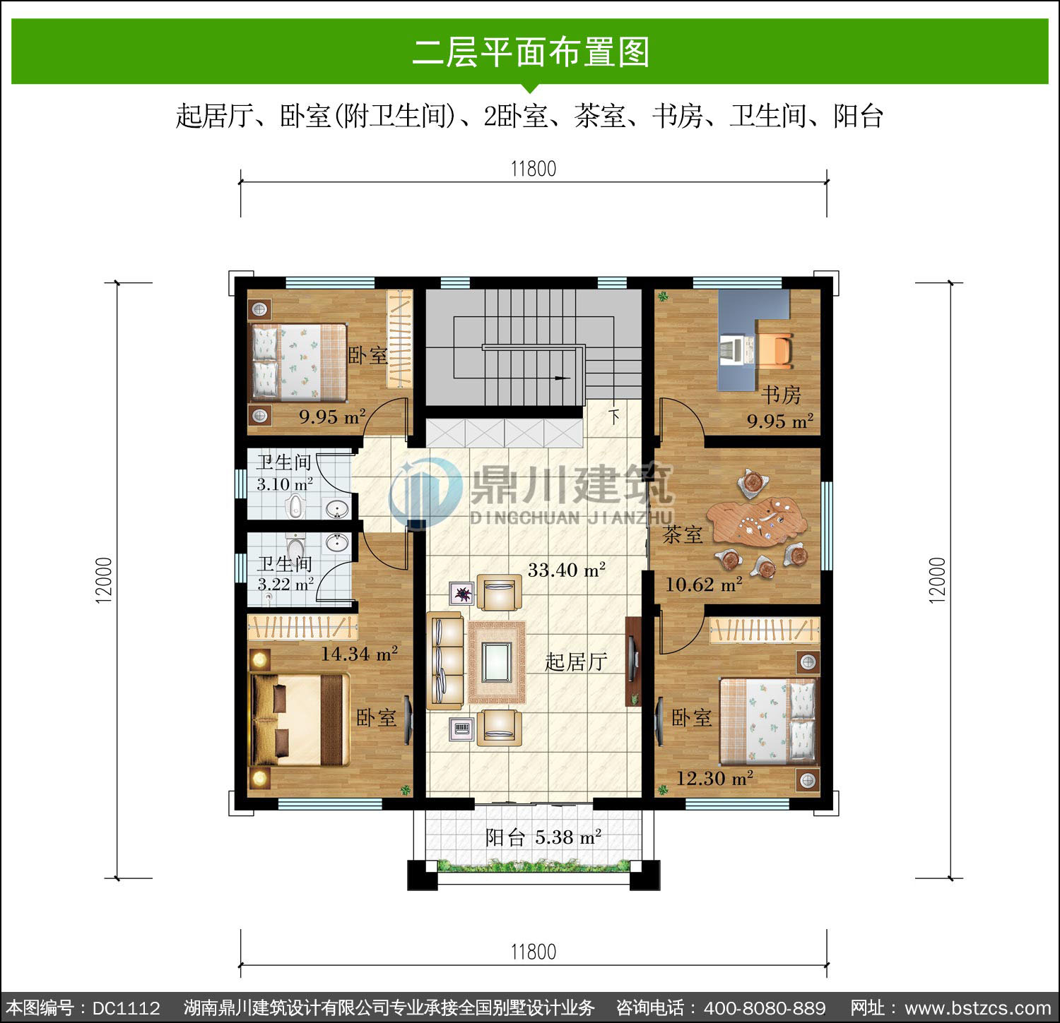 | 二 層: | 起居廳、臥室(附衛(wèi)生間)、2臥室、茶室、書(shū)房、衛(wèi)生間、陽(yáng)臺(tái) | |||