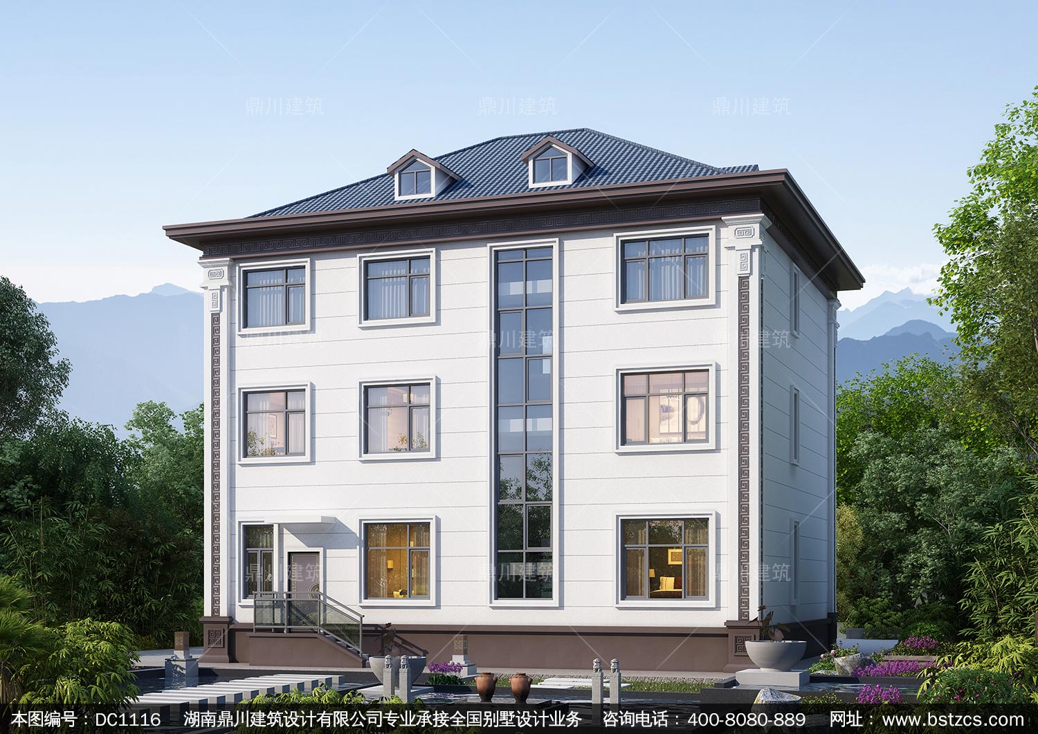 大氣三層新中式別墅設(shè)計圖紙及效果圖_農(nóng)村自建別墅設(shè)計,鼎川建筑
