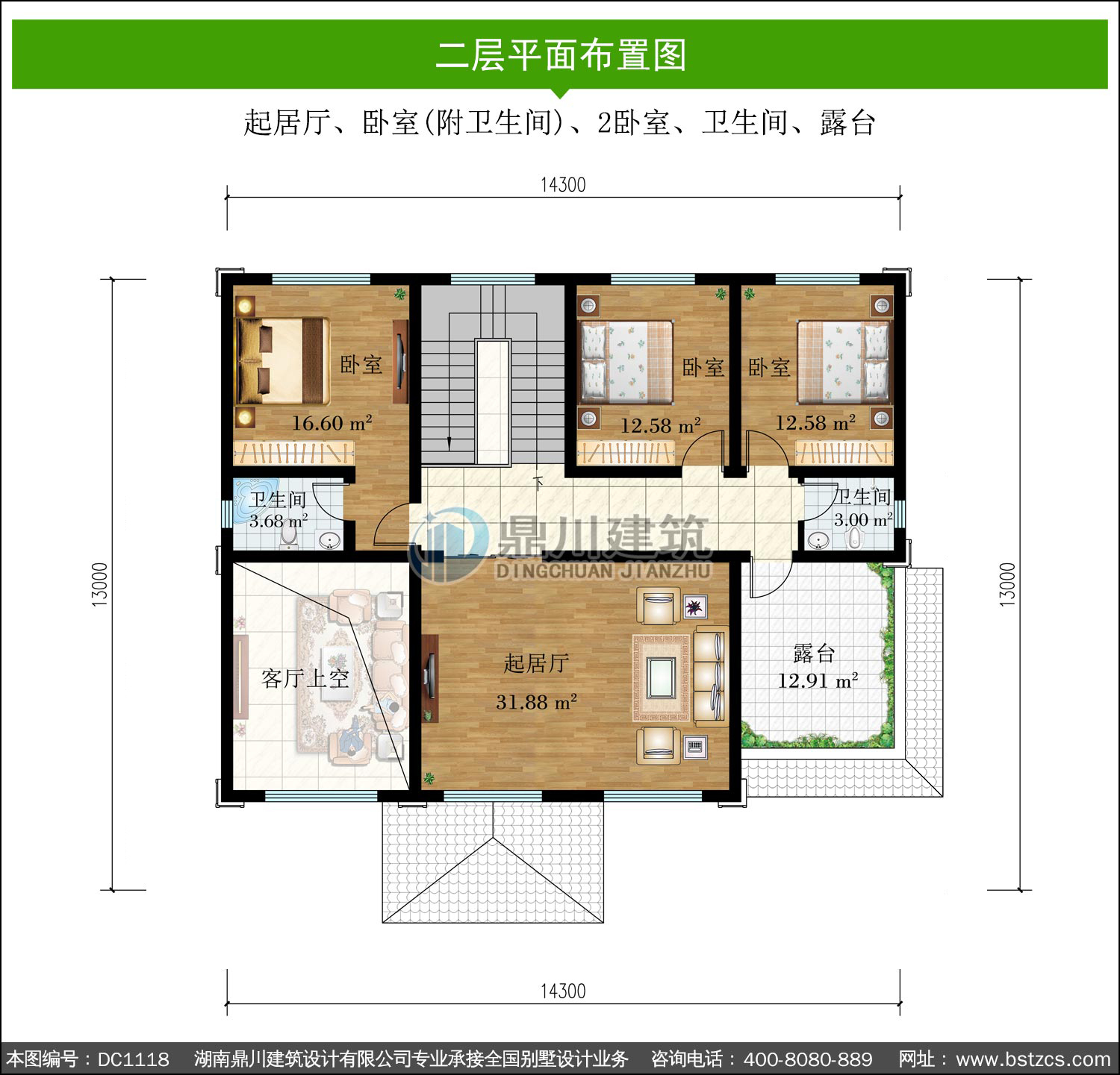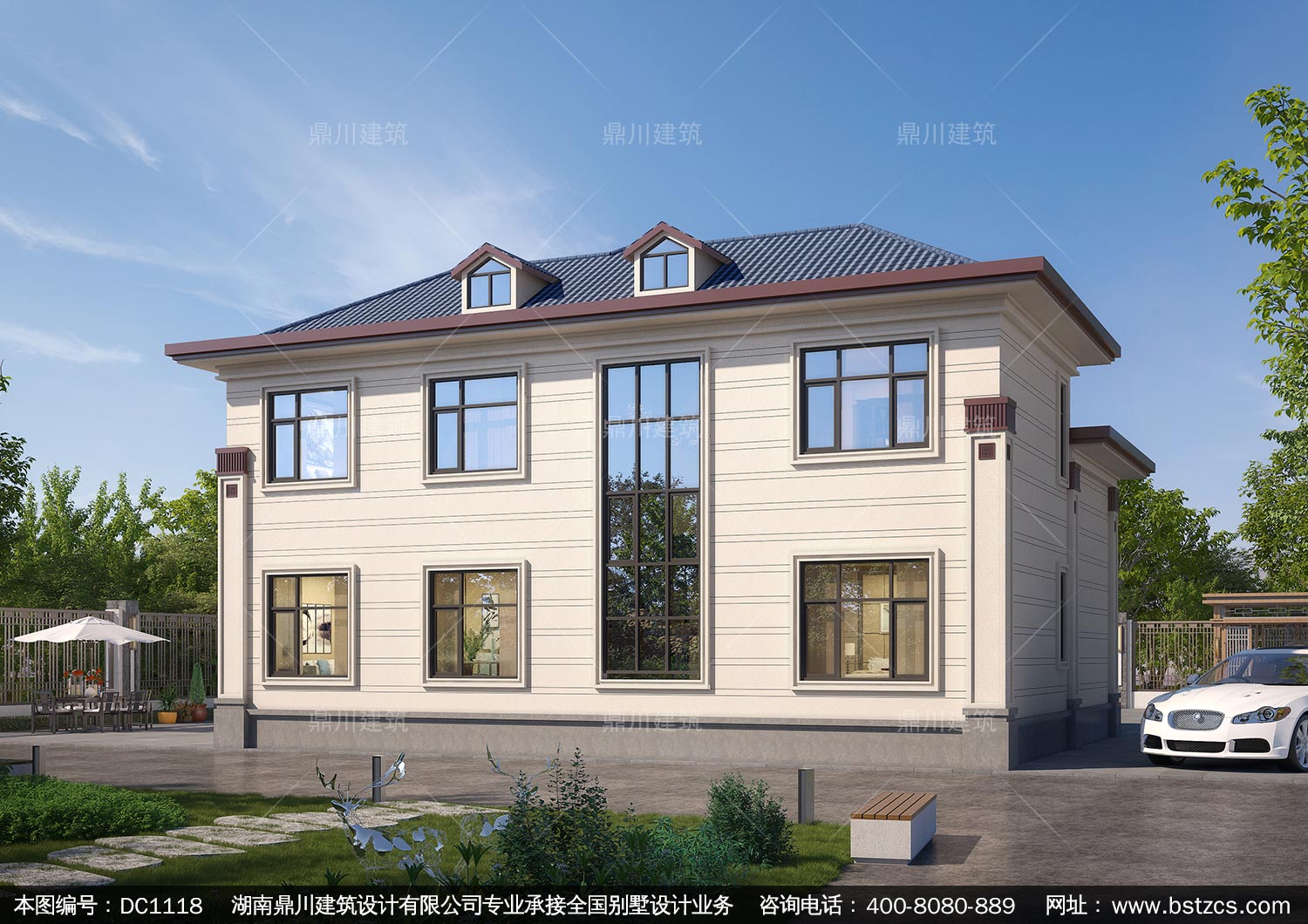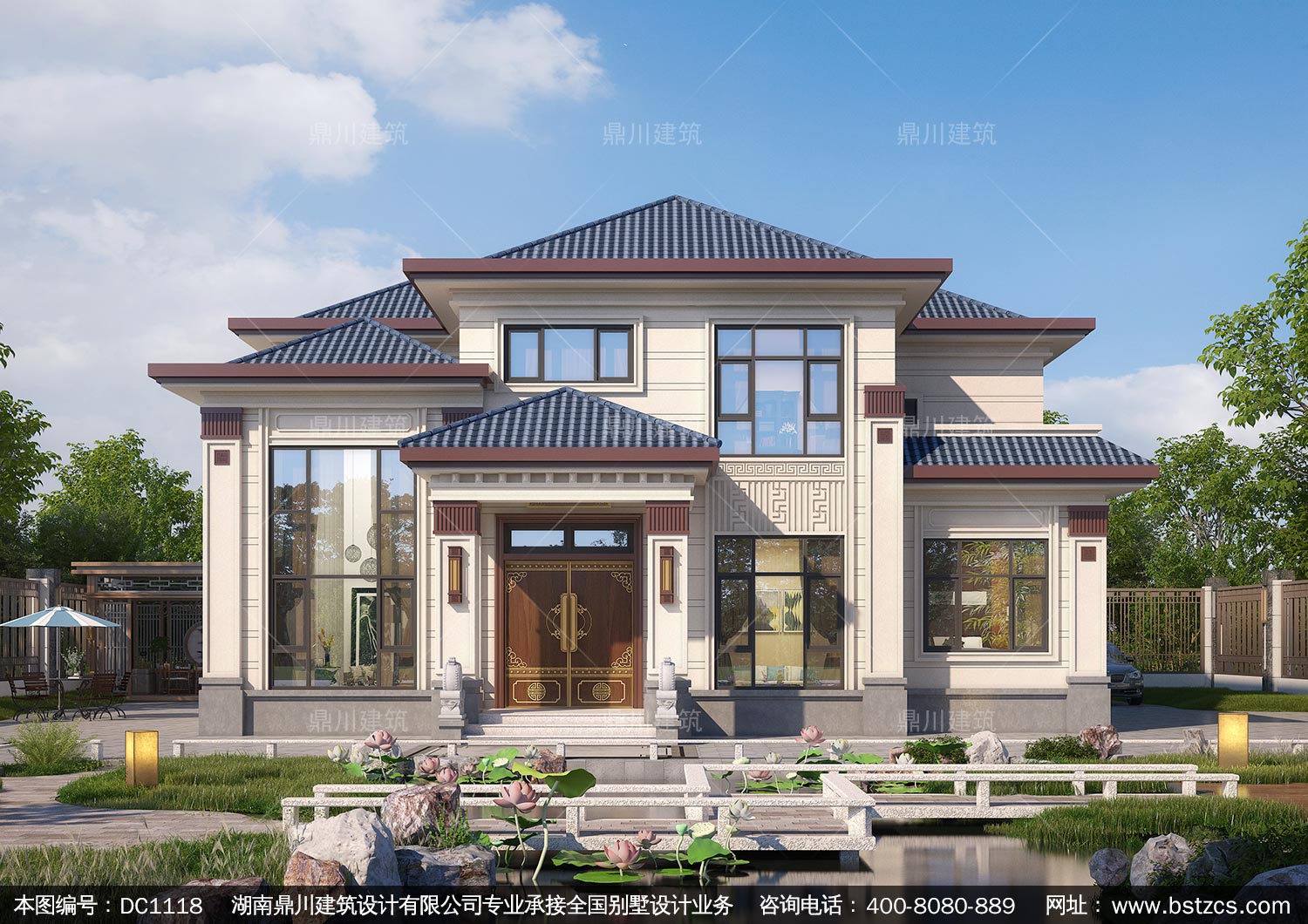 新中式二層復式別墅效果圖及施工圖紙_農村自建別墅設計,鼎川建筑