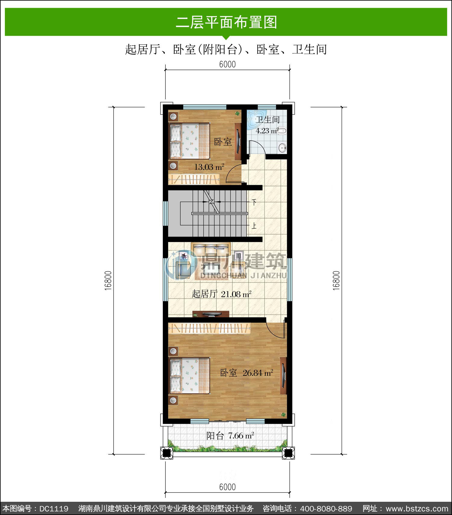 | 二 層: | 起居廳、臥室(附陽臺)、臥室、衛生間 | |||