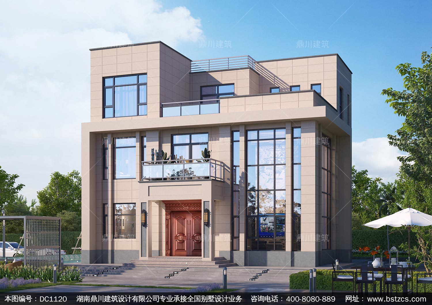 現代三層平屋頂別墅設計圖紙及效果圖_新農村自建別墅,鼎川建筑