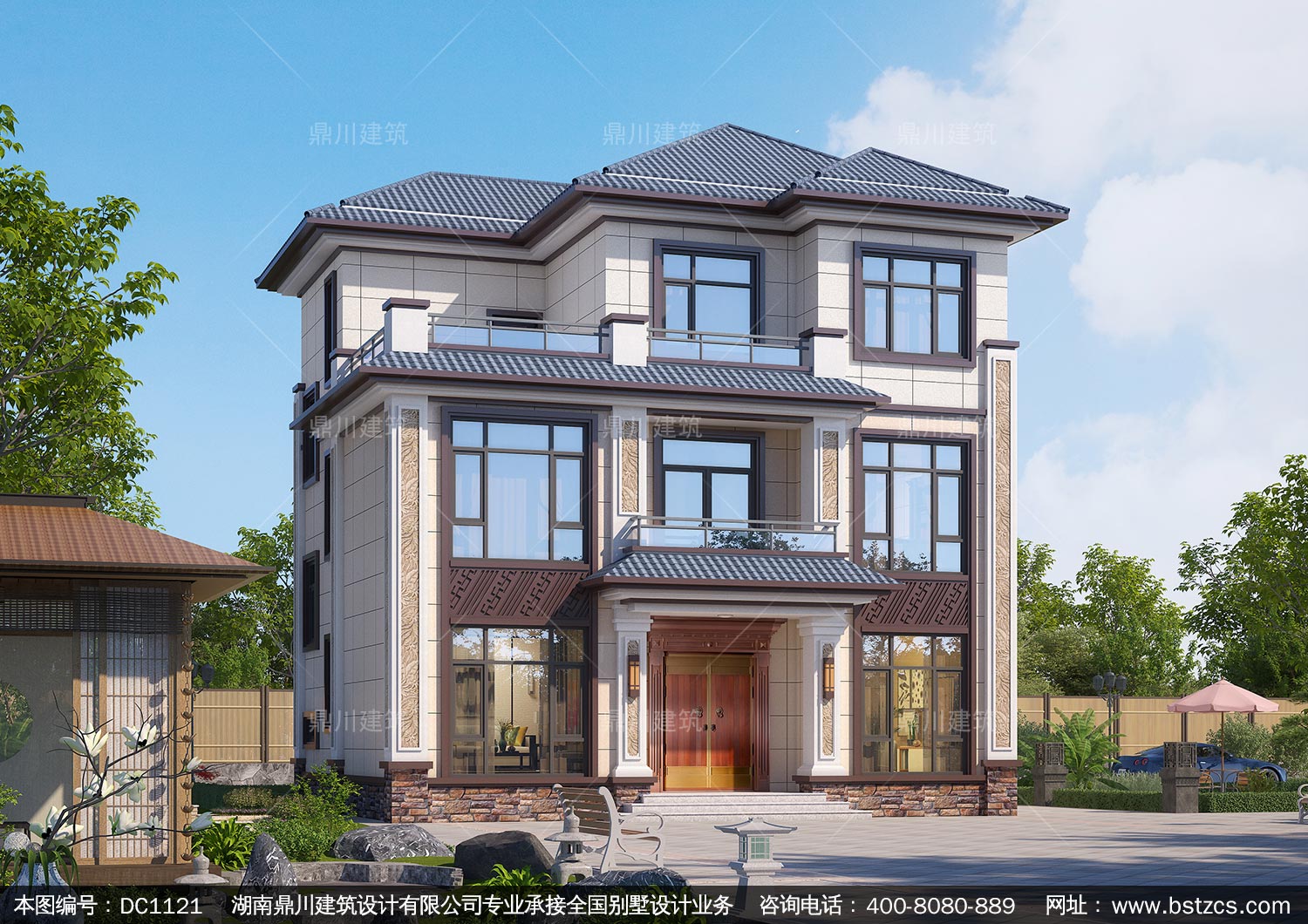 三層新中式別墅全套圖紙及效果圖_新農村自建別墅設計,鼎川建筑