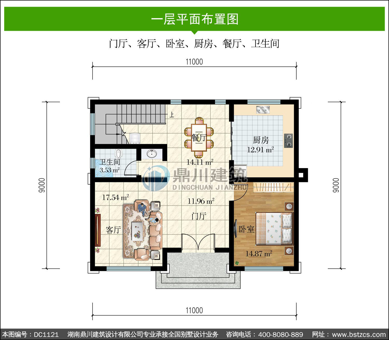 | 一 層: | 門廳、客廳、臥室、廚房、餐廳、衛生間 | |||