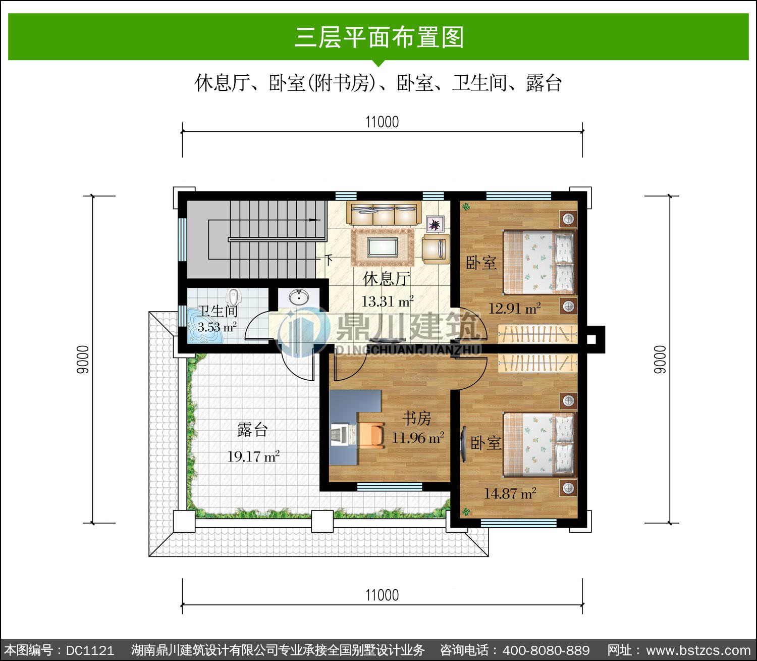 | 三 層: | 休息廳、臥室(附書房)、臥室、衛生間、露臺 | |||