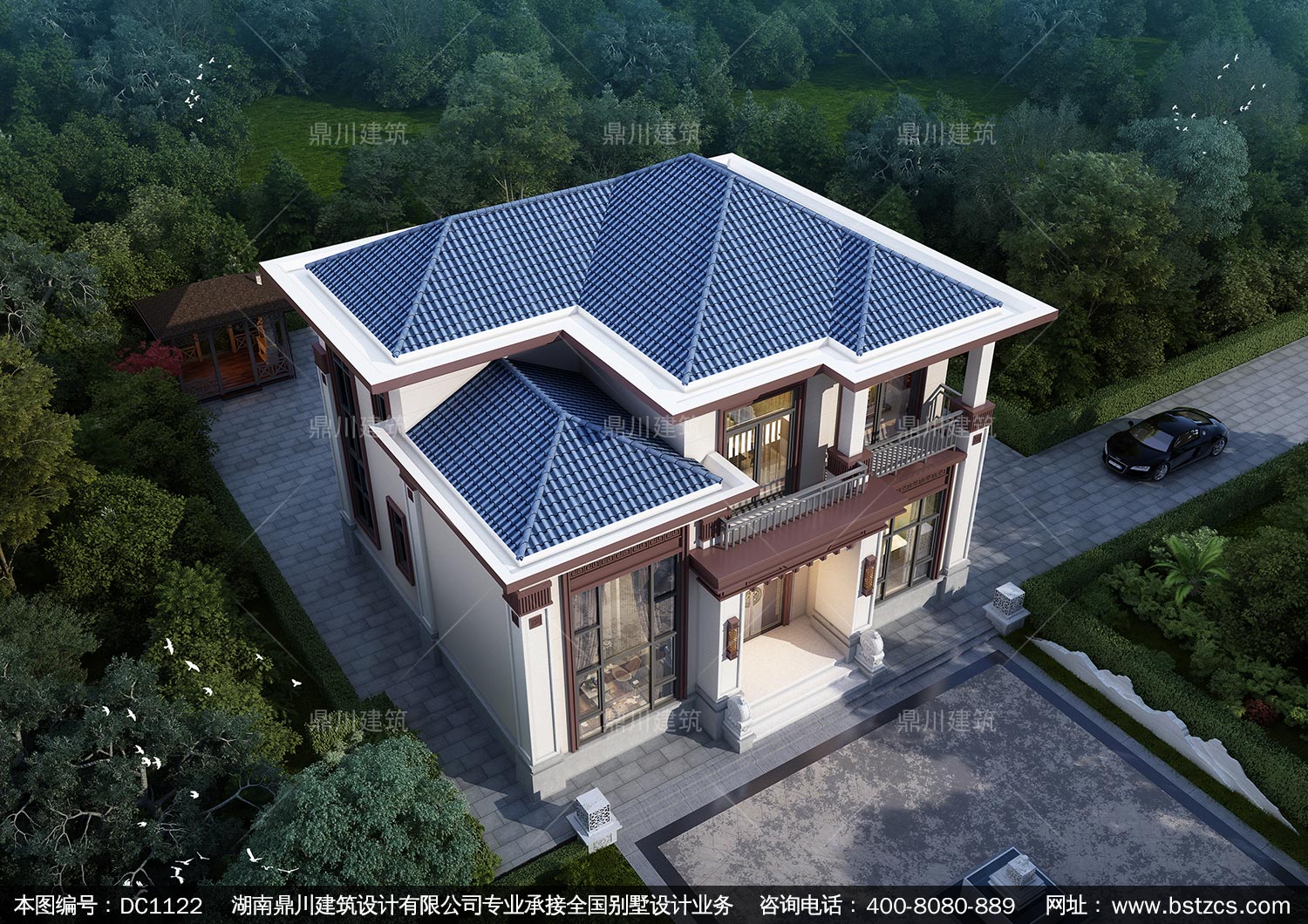 新中式二層復式別墅效果圖及施工圖紙_農村自建別墅設計,鼎川建