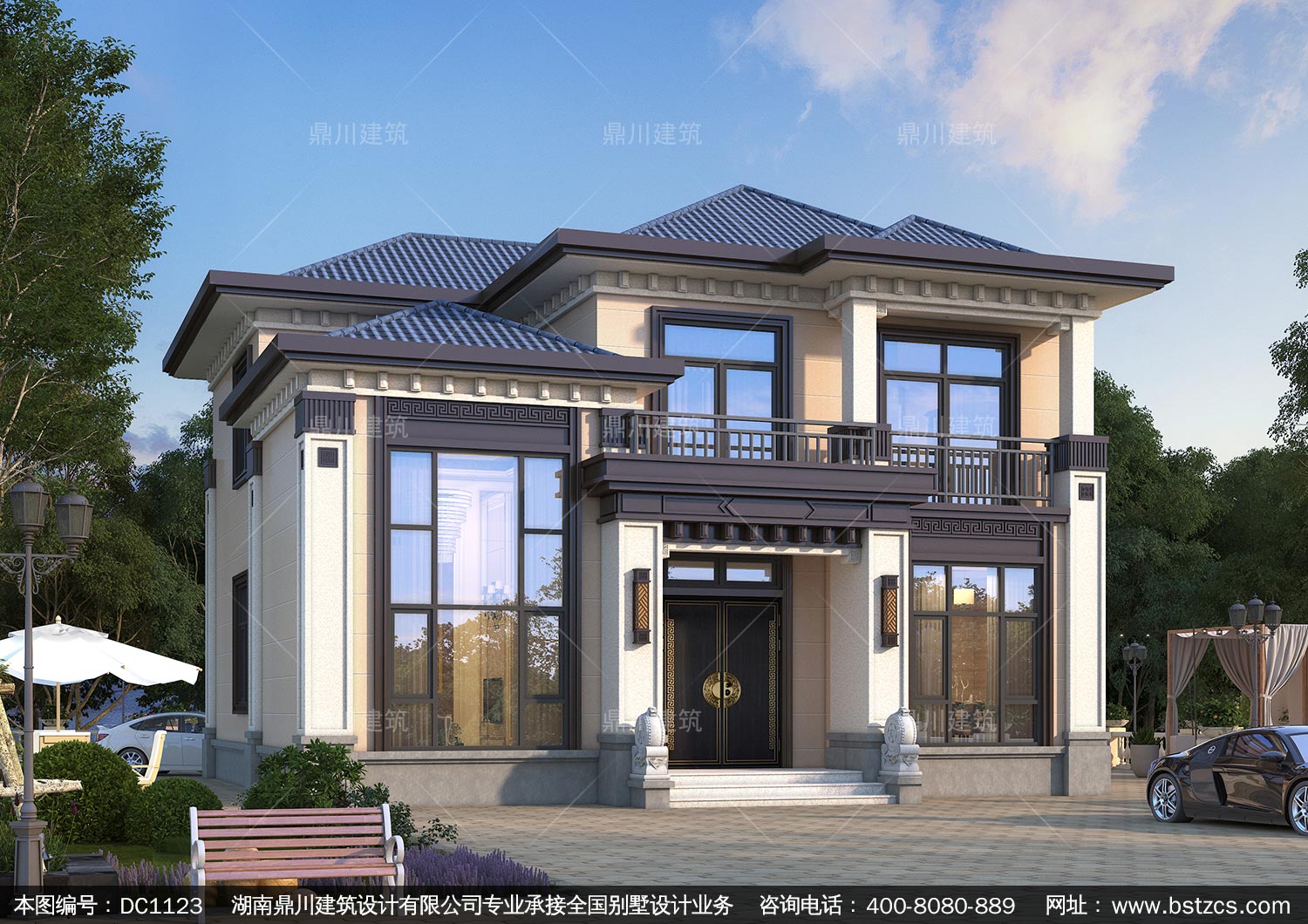 新中式二層別墅圖紙及外觀效果圖_農(nóng)村自建別墅設(shè)計(jì),鼎川建筑
