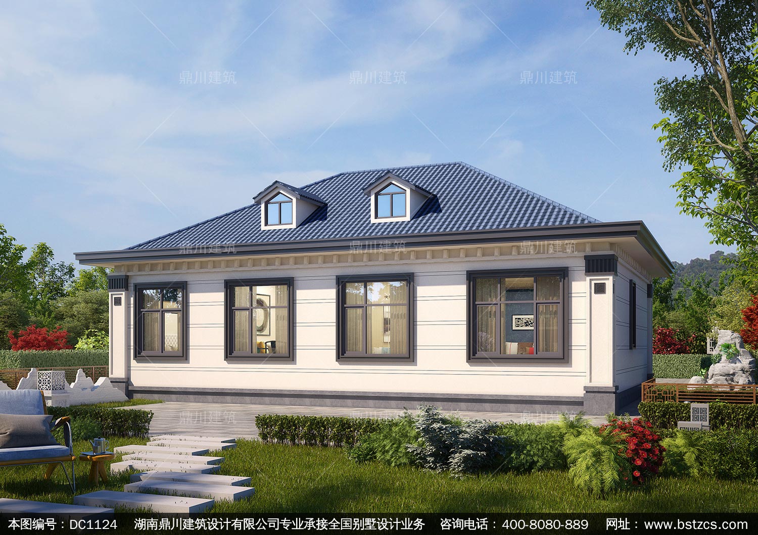 新中式一層別墅施工圖紙及外觀效果圖_農(nóng)村自建房設(shè)計,鼎川建筑