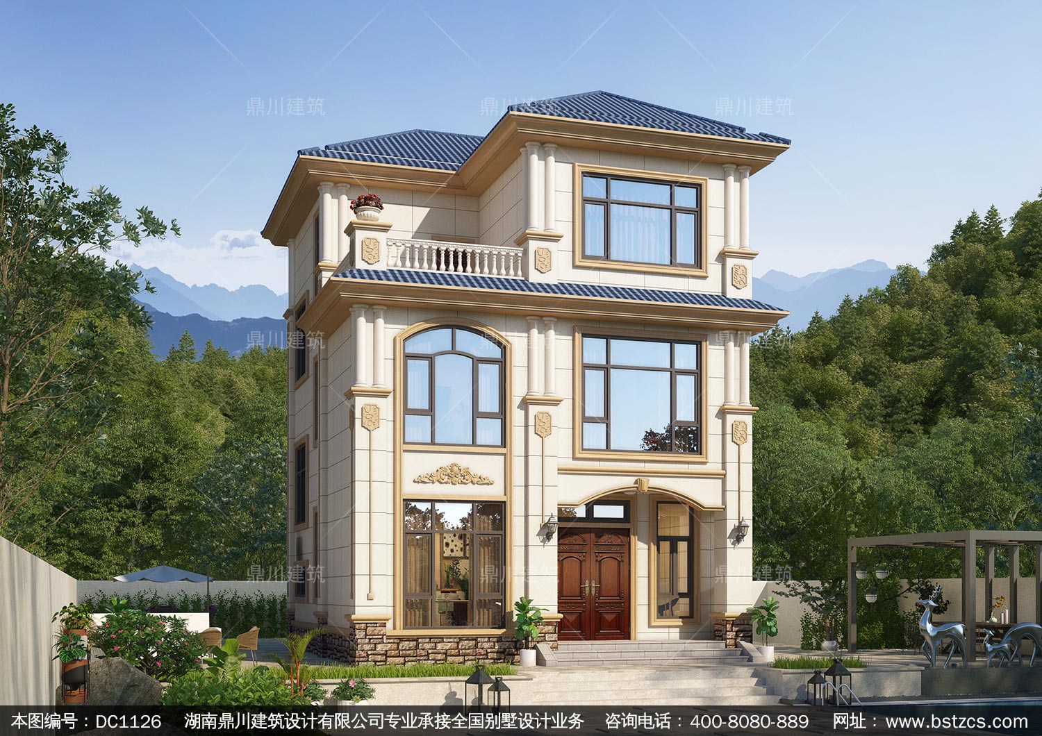 三層簡歐帶露臺小戶型別墅圖紙及效果圖_農村自建房設計,鼎川建筑