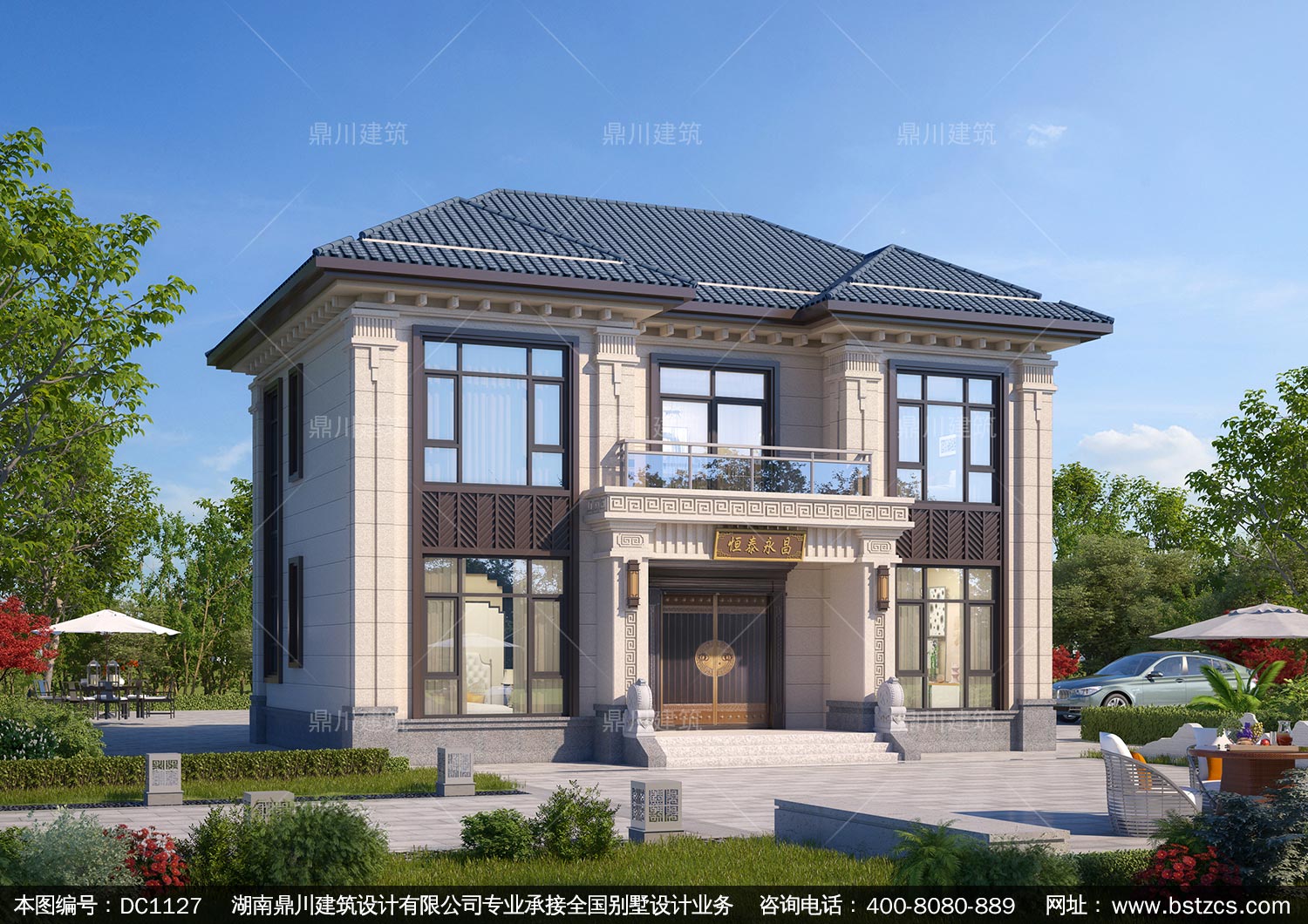 新中式二層別墅圖紙及外觀效果圖_農村自建別墅設計,鼎川建筑