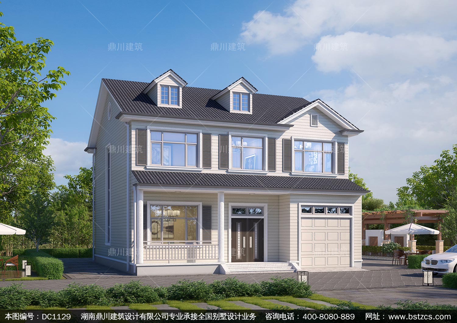簡約二層帶車庫別墅圖紙及外觀效果圖_新農村自建別墅設計,鼎川建筑