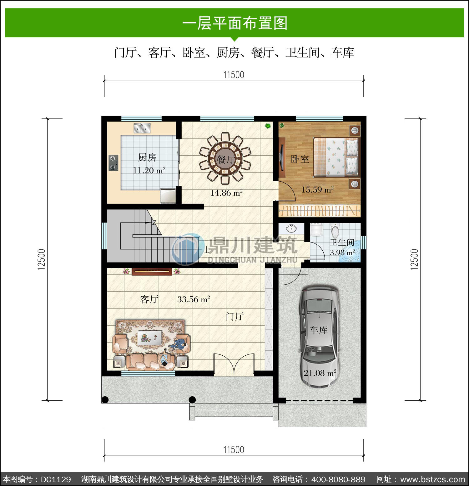 | 一 層: | 門廳、客廳、臥室、廚房、餐廳、衛(wèi)生間、車庫 | |||