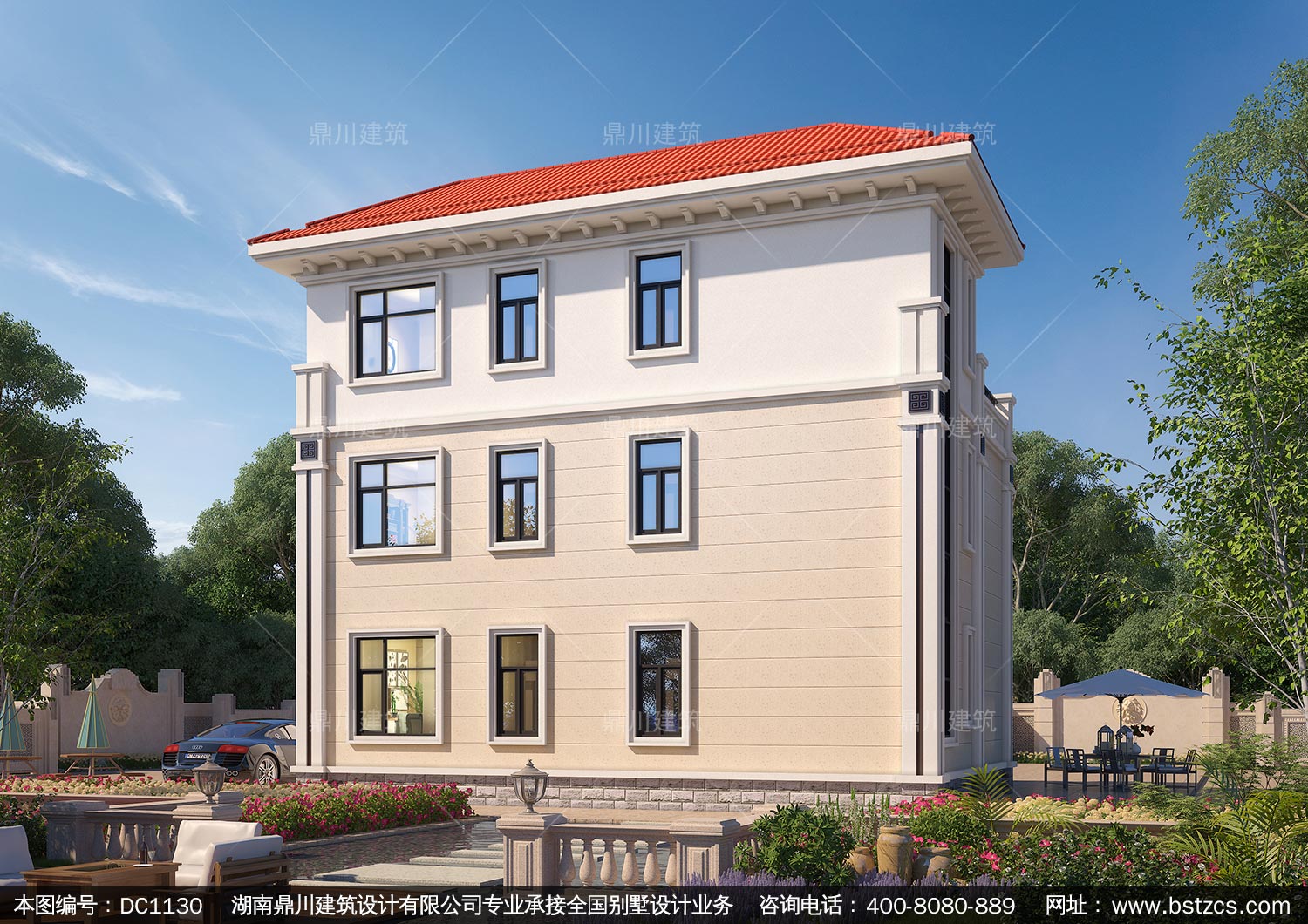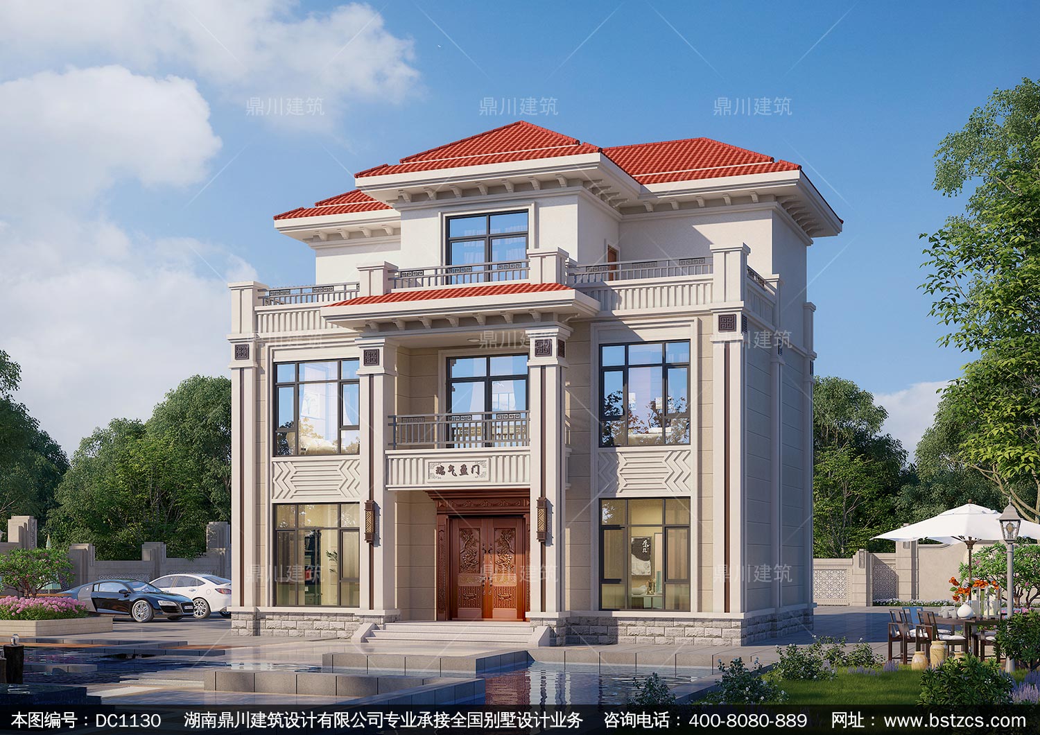 大氣新中式三層帶電梯別墅圖紙及效果圖_農村自建別墅設計,鼎川