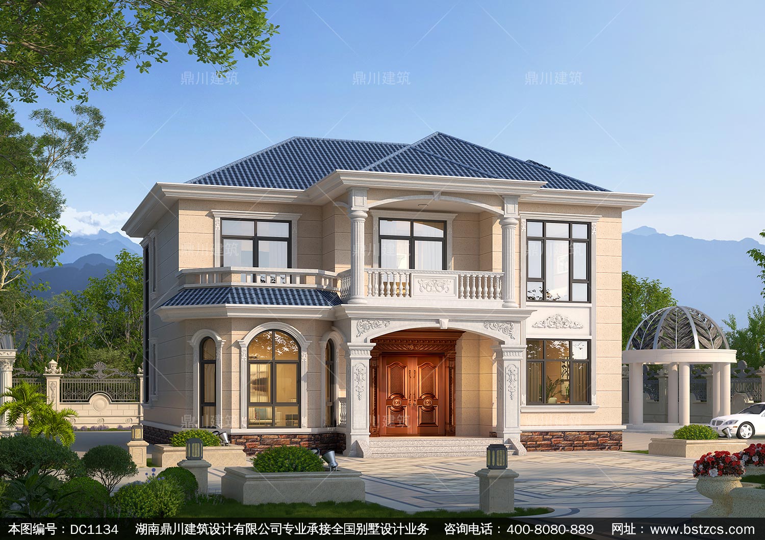 歐式二層帶露臺別墅圖紙及外觀效果圖_農村自建別墅設計,鼎川建