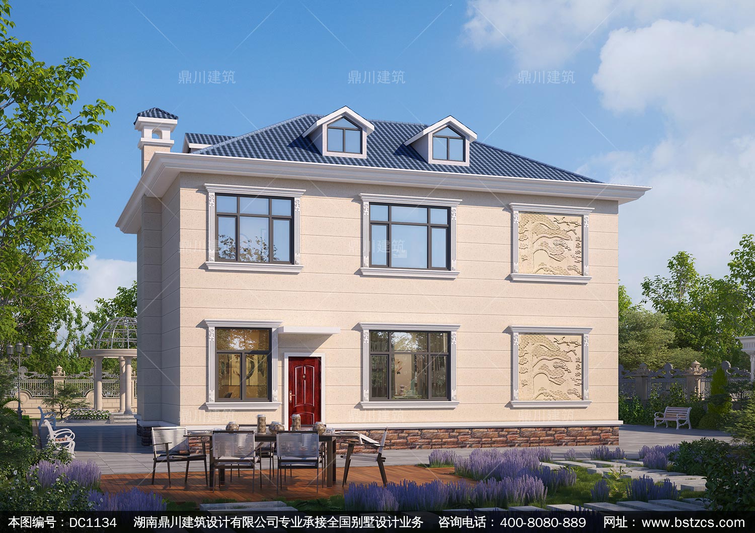 歐式二層帶露臺實用別墅施工圖紙及效果圖_農村自建房設計,鼎川建筑